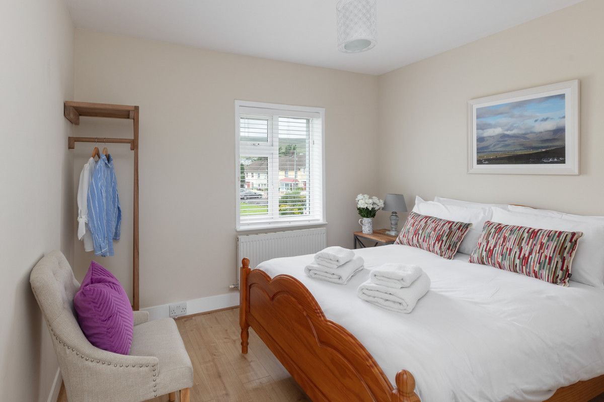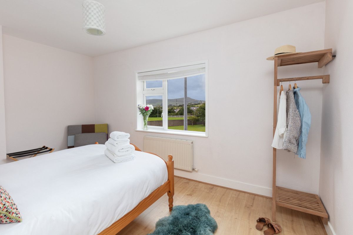 Convenient and cosy, great for al fresco dining and with easy parking, (property name) is a delightful ‘two up two down’ situated on a pretty cul de sac in the heart of Dingle Town.Tucked away on a quiet residential estate and yet within 2 minutes walk of Main street, you’ll have easy access to all Dingle’s superb attractions, restaurants, pubs and shops and still be able to pop back home any time of day to enjoy some peace and tranquility in the south facing garden. With two doubles and a bathroom upstairs as well as an accessible downstairs single bedroom and bathroom, this freshly decorated three bed house would just as easily suit a family as a group of friends or colleagues.The bright and airy open plan kitchen/living room overlooks a large public green and you won’t even have to leave the sofa to admire the view westwards towards Dingle Harbour !