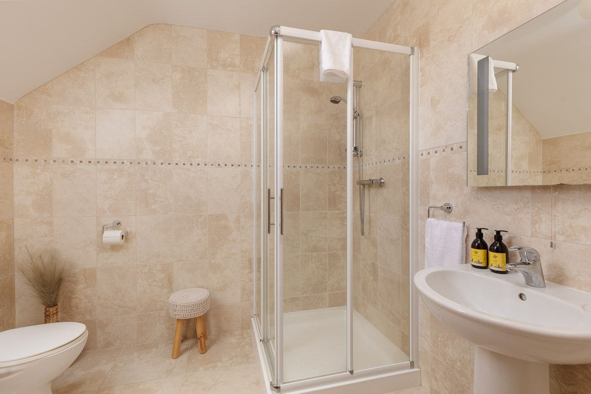 The three ensuite bathrooms all have shower cubicles, toilets and sinks.