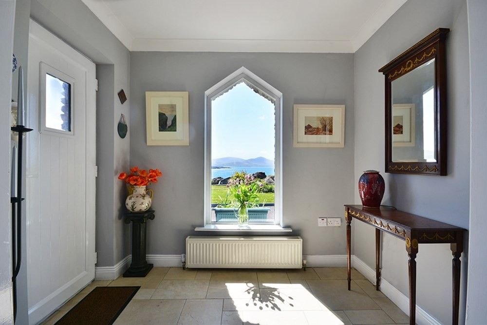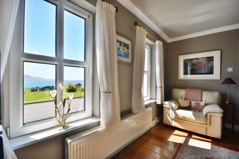Seascape is a luxuriously appointed home sitting on two acres of uninterrupted, 360-degree panoramic views of the Atlantic Ocean, Smerwick Bay, the Three Sisters, Ballydavid Head and Mount Brandon. This high-end property is a 12-minute drive from Dingle town, and a few minute drive to several charming nearby hamlets with pubs and restaurants. Seascape has a vaulted entrance hall, three lounges for reading, relaxing or watching TV, a large kitchen/dining room and three tastefully furnished bedrooms with ensuites. This home has it all: a spacious and luxurious interior as well as an awe-inspiring ocean view outside. There is no place like Seascape.