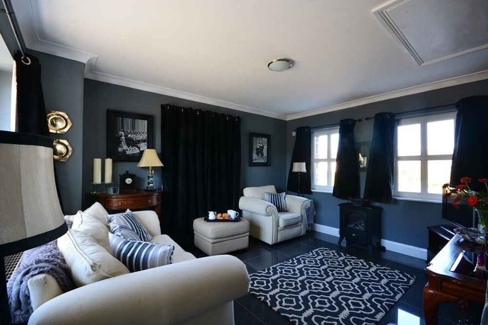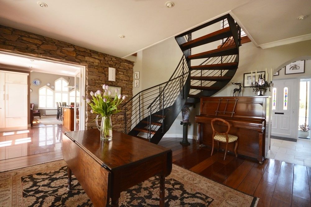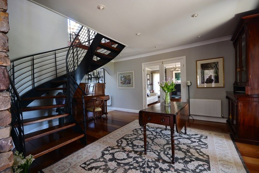 Including the upstairs lounge/library, there are three lounges in Seascape: one for reading, one for games and one for television. There is a lounge off of the main entrance hall, which has a lovely fireplace, stunning sea views, and amble space for reading, relaxing and spending quality time with family and friends. The room is stocked with puzzles, games and cards. The third is a cosy lounge/snug with a large screen TV, located at the back of the house. Blackout curtains in this room create a perfect backdrop for evening movies. This home has several large halls dividing the function rooms. There are dramatic black metal spiral stairs that lead to a landing overlooking the entrance hall.