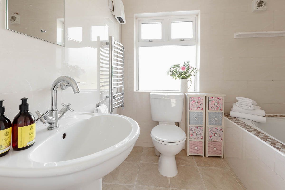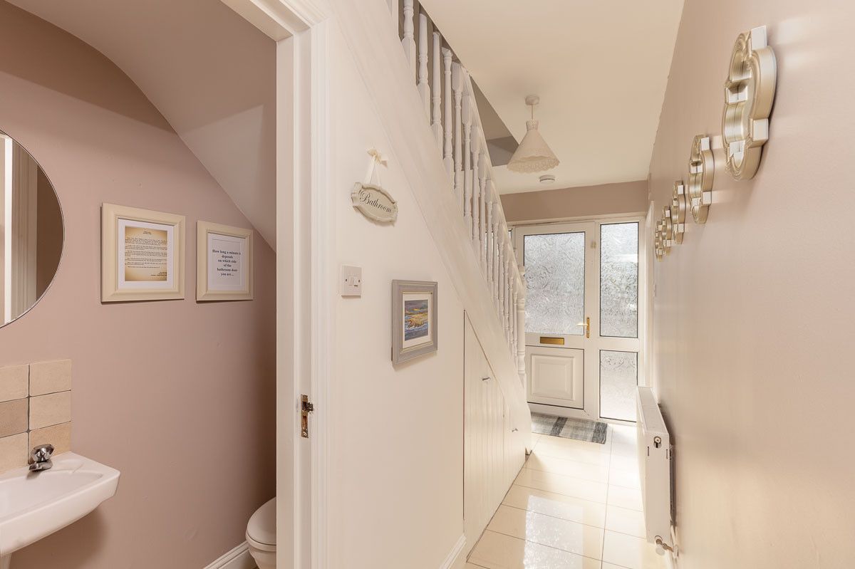 Downstairs toilet and shower room while upstairs the family bathroom is fully tiled and with electric shower, a generous bathtub and heated towel rail, it’s a great opportunity to relax and unwind with a soak.