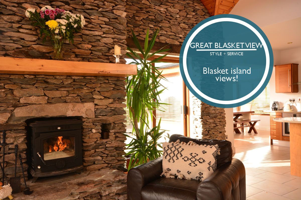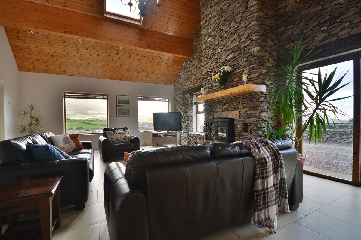 Great Blasket View is the perfect haven for all who wish to experience the beautiful wild west of Ireland in comfort and style. The hallway leads into an open plan living area with wonderful views, a high vaulted ceiling and contemporary, tasteful decor. This home is spacious with four bedrooms and four bathrooms, ideal for a family or group alike looking for something a bit special. Cocooned from the stresses of the modern world, you can unwind, relax and witness the most incredible sunsets drenching the Islands and Atlantic.