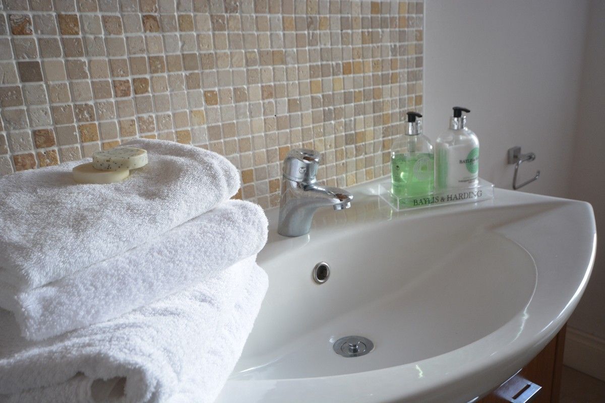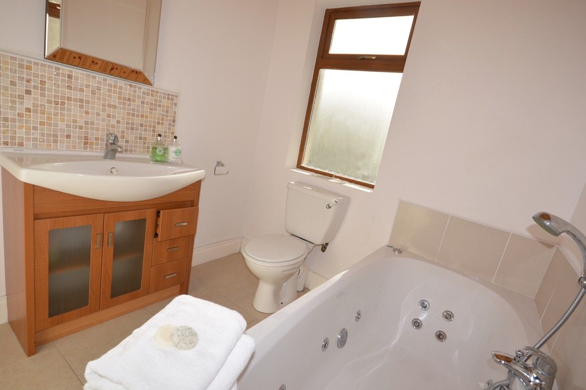 There are four bathrooms, three ensuites each with a shower, sink and toilet off the double bedrooms and then a family bathroom opposite the twin room with a jacuzzi bath, sink, toilet and shower.