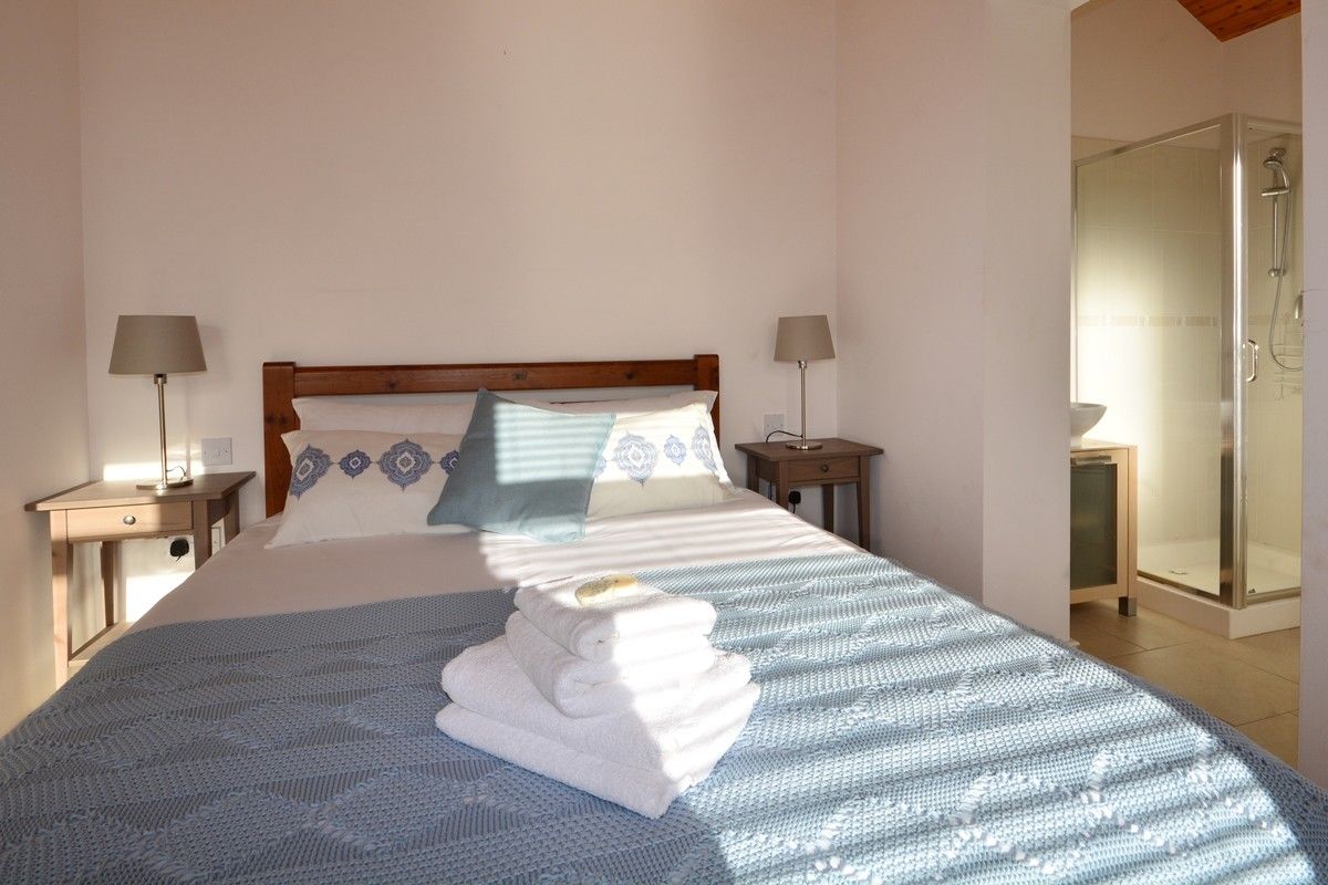 There are four bedrooms in Great Blasket View. Off the main entrance hall there are two doubles with ensuites and a twin room. Adjoining the main living area there is another double bedroom with an ensuite. All the bedrooms have minimalist fitted wardrobes, bedside tables, lamps and high quality linen and soft furnishings.