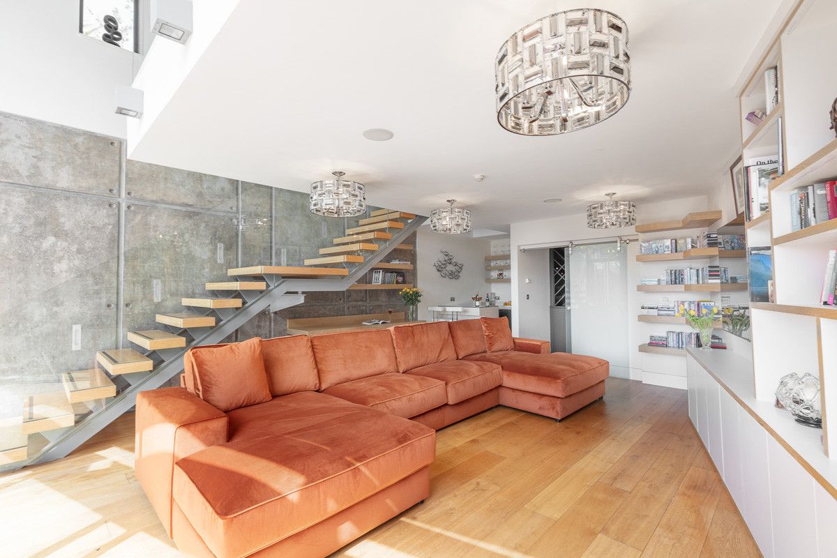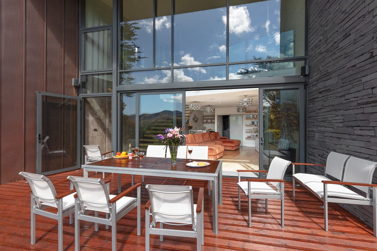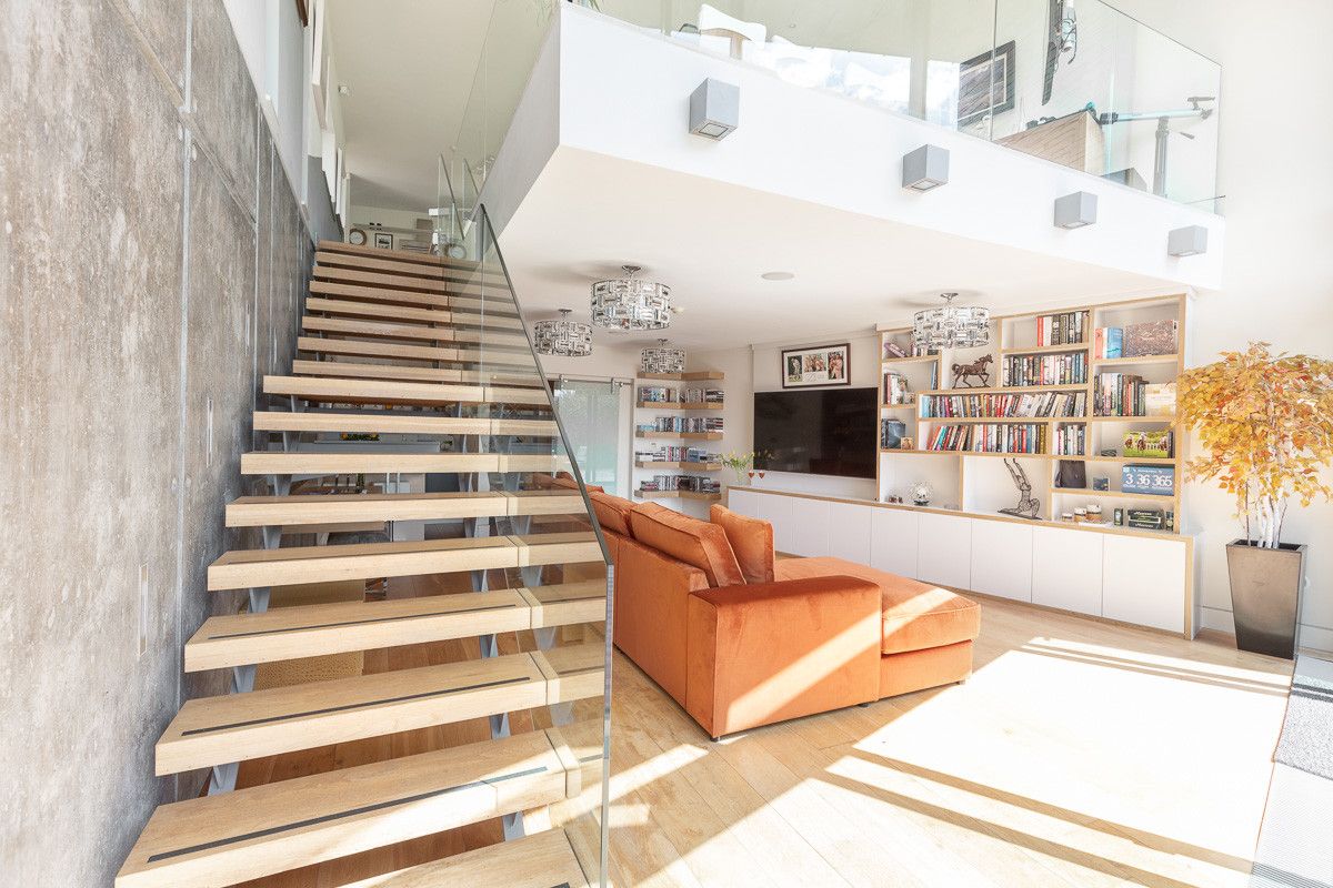 Descend the stairs here to find another wall of glass with fabulous views and sliding doors to a large patio area, perfect for al fresco dining, a BBQ or sipping your gin and tonic overlooking the lake. Within there is a library room with large luxurious couches where you can sink in and watch movies on the huge screen. The room is completed with its own bar where you can shake up a few cocktails.