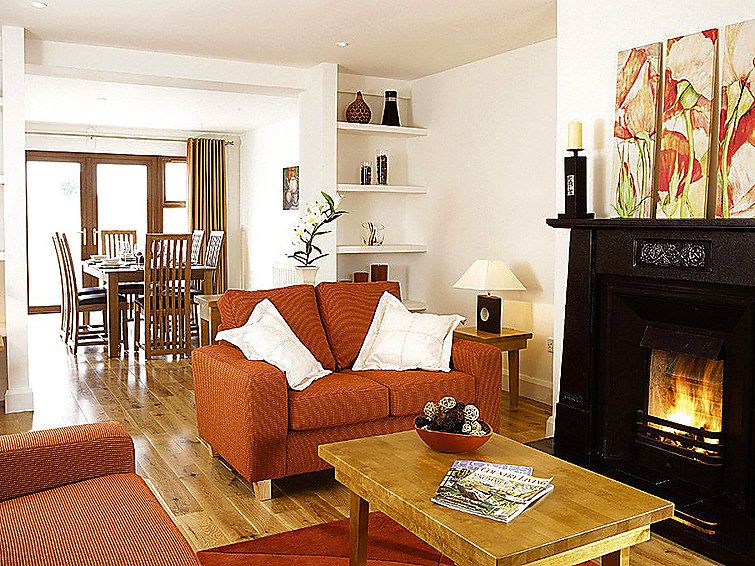 4-room terraced house on 2 levels. Very comfortable and tasteful furnishings: living/dining room with open-hearth fireplace, TV and DVD. Exit to the patio. Open kitchen (4 hot plates, oven, dishwasher, microwave) with bar. Sep. WC. Upper floor: 1 room with 1 double bed and shower/WC.