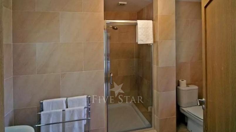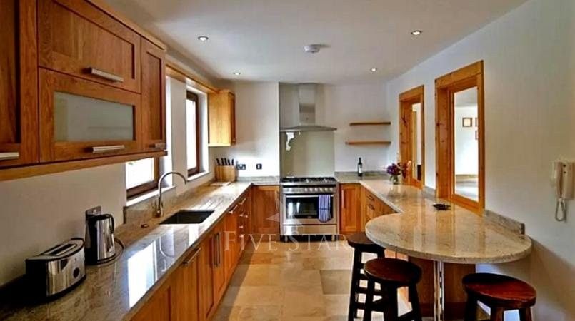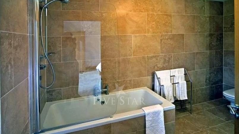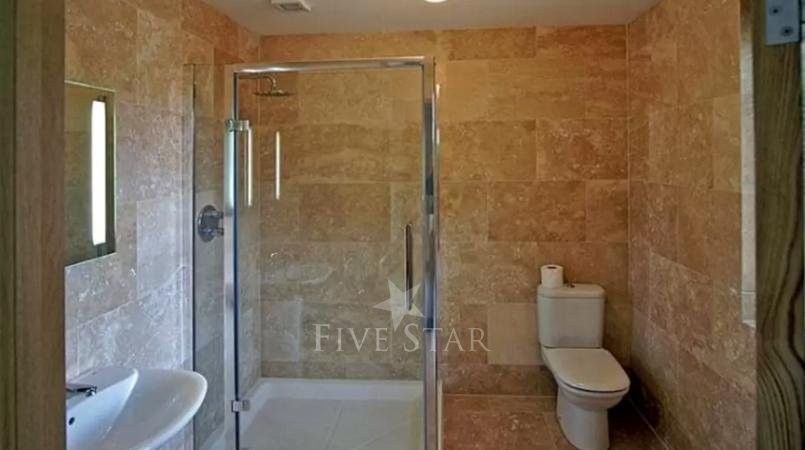 It has three bedrooms; one with a 5ft double and en suite bath with shower and W.C. and two each with a 5ft double and en suite shower and W.C. Oil fired central heating (underfloor).