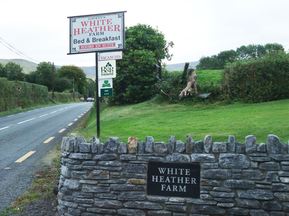 The three star approved White Heather Farmhouse Bed & Breakfast is located on 100 acres of farmland close to Kenmare town, Co. Kerry, in a picturesque quiet area with stunning mountain views. The River Sheen flows through the farm on its way to Kenmare Bay and a fishing licence may be purchased in the local town of Kenmare. The Lovett Family have been welcoming guests for over 40 years.