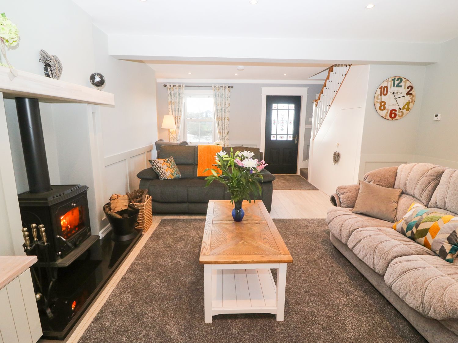 Three bedrooms: 2 x double (one with en-suite shower, basin and WC, 1 x single. Shower room with basin and WC, ground floor shower room with basin and WC. Open-plan kitchen, dining and sitting area. Utility. Sitting room with woodburning stove.