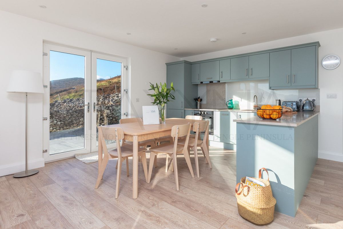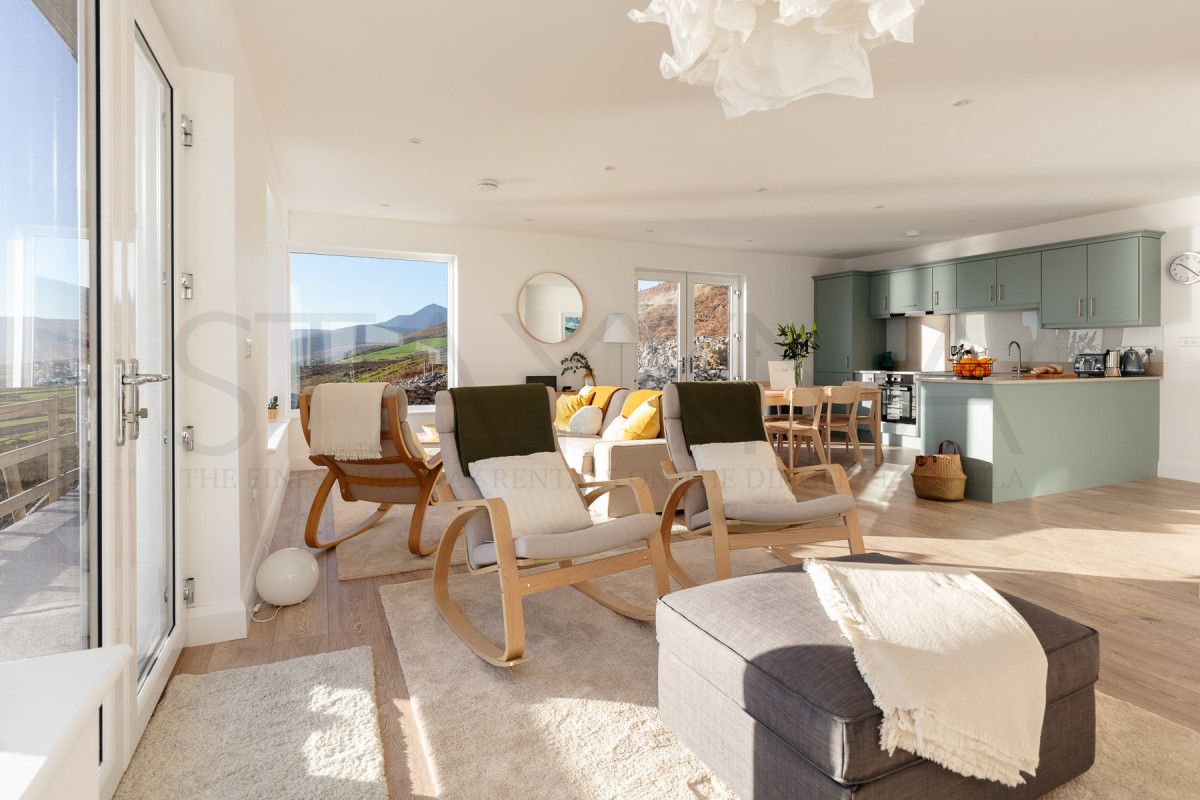 The open plan kitchen-dining-living room is a bright and open space which opens up to give full access to the incredible views that make this house.