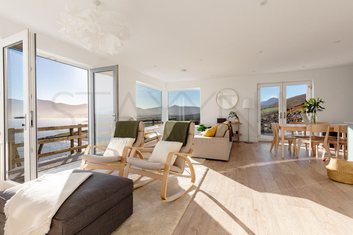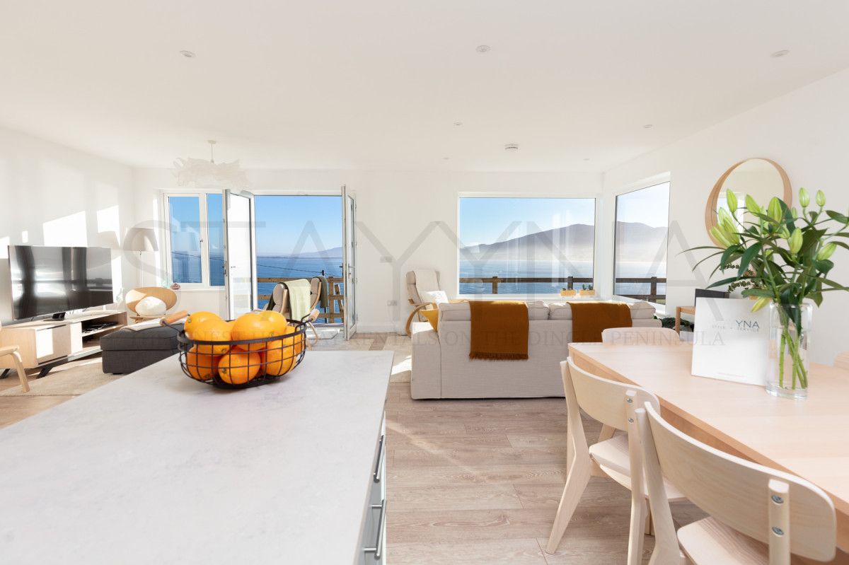 Feel like you’re in a house at the edge of the world in this secluded contemporary home perched on the hillside just by the scenic observation point at Brandon Point. Sitting back taking in the majestic views from here, each window is like a painting, albeit an ever-changing one. Driving through a farmyard to reach your gate, you’ll really feel like you’re getting away from it all, with grazing sheep as your nearest neighbours. This newly-renovated house truly has some of the best views on a peninsula where there isn’t a bad view! Get away from it all for true peace and relaxation in a stylish home with every modern convenience.