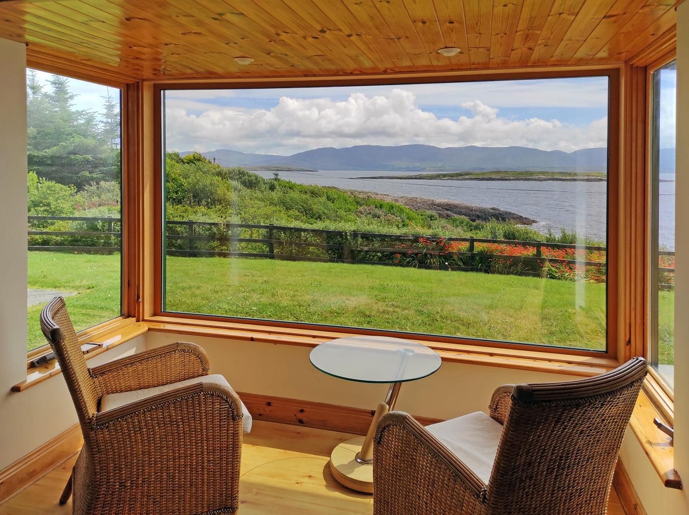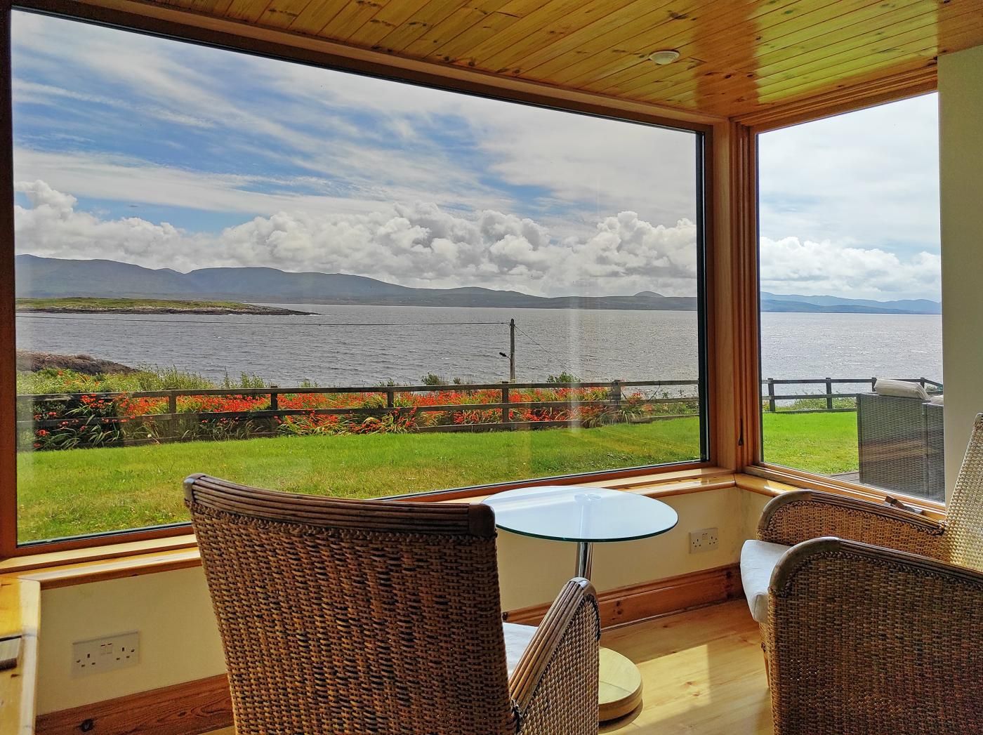 Set in an elevated position between the mountains and the sea, this spacious stone house boasts magnificent views across Kenmare Bay to the Beara Peninsula and the Caha Mountains beyond.
