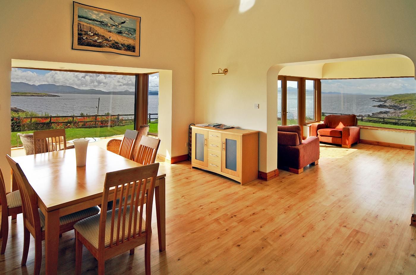 Located a short stroll from Gleesk Pier and a rare coral beach, it’s part of the Kerry Geopark, where unique geology, ancient archaeological sites and a rugged, coastal landscape combine to fascinate visitors. Guests to this light and airy abode will be equally happy to spend time at the property, gazing at the dramatic coastline through its large picture windows.