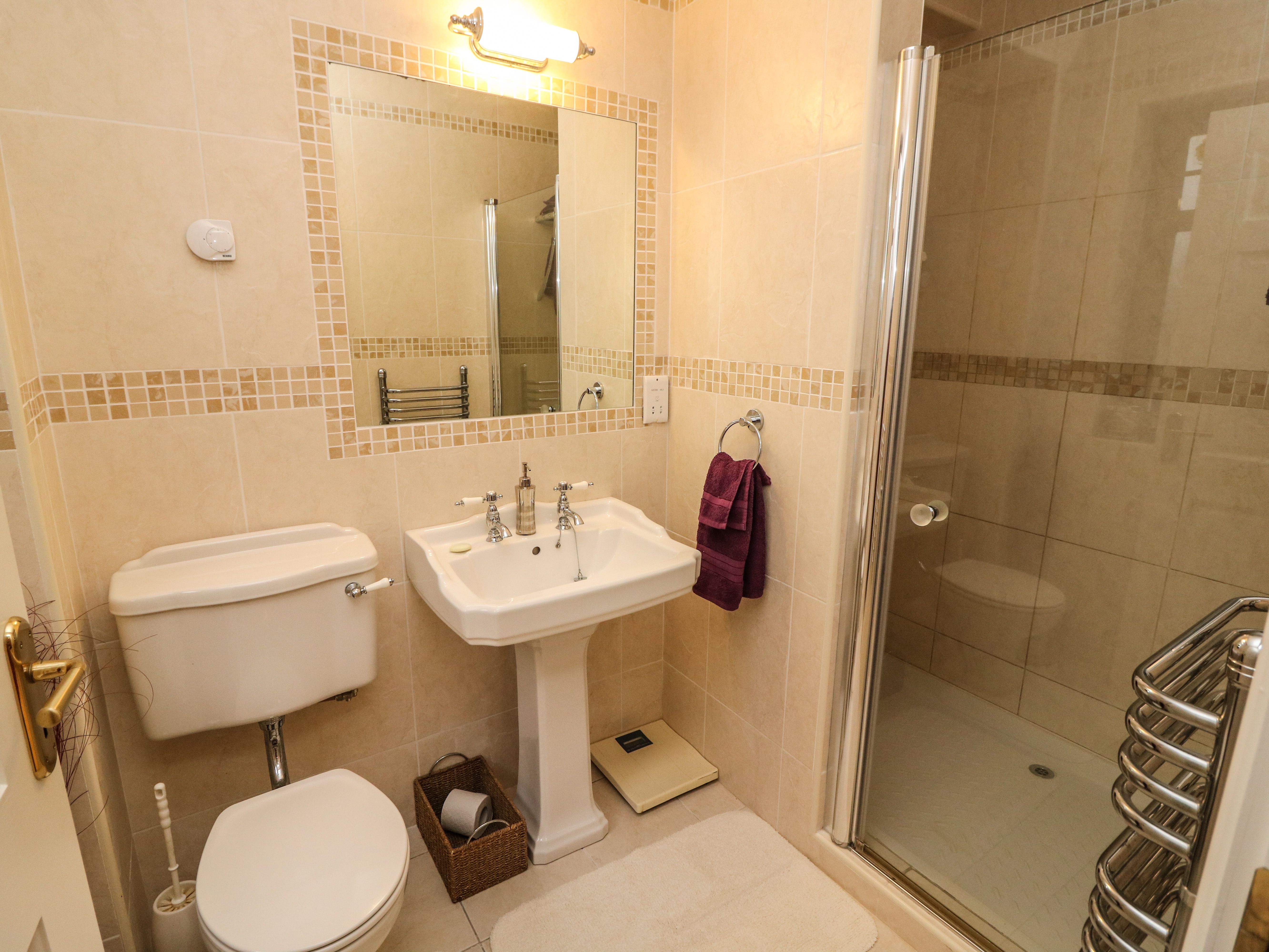 Accomodation Details Four bedrooms: 1 x ground-floor double with en-suite walk-in shower, basin, heated towel rail, bidet and WC, 1 x ground-floor double with en-suite walk-in shower, basin, heated towel rail and WC, 1 x double with en-suite walk-in shower, heated towel rail, basin and WC, 1 x ground-floor double. Ground-floor bathroom with bath, shower over, basin and WC. Open-plan living space with kitchen, dining area, 2 x sitting areas and open gas fire. Utility room with washing machine, dryer and an additional fridge