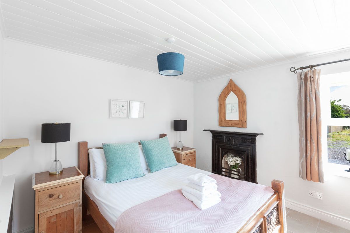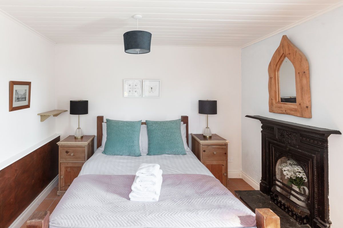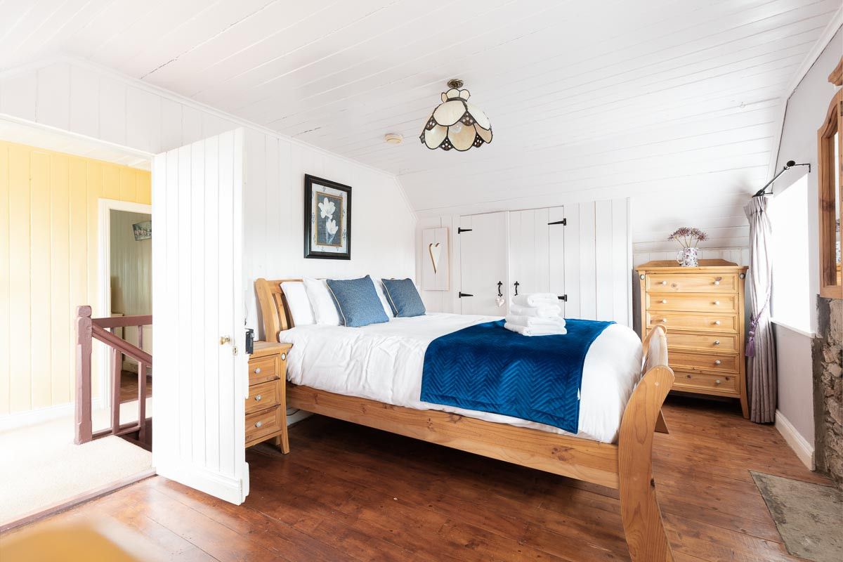 On the ground floor, just off the sitting room is a restful double room with a queen-size bed its own fireplace and tiled floors. This room is perfect if you do not wish to use stairs at all as there is a family bathroom on the ground floor