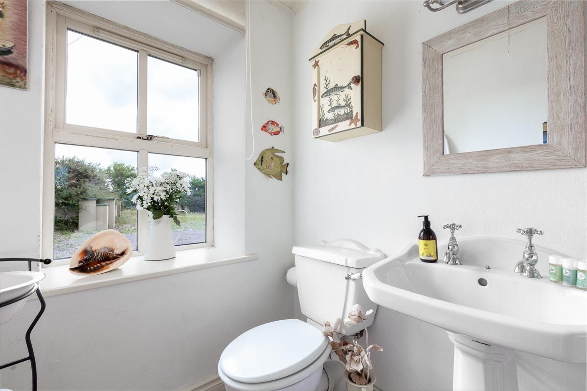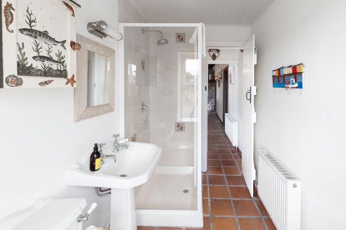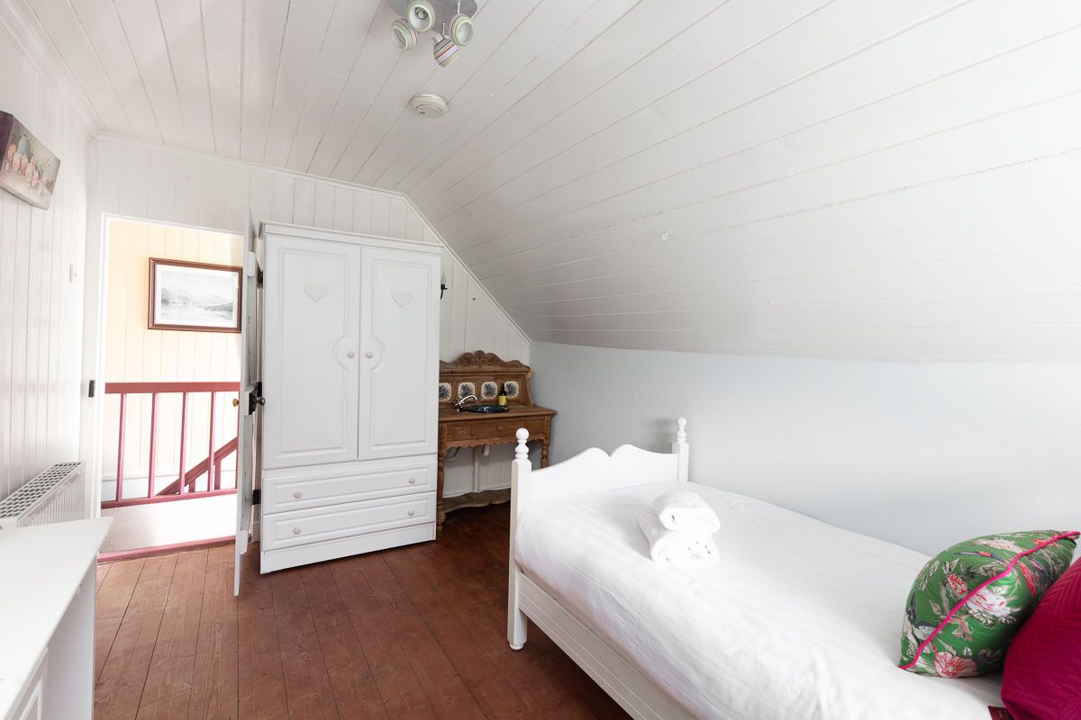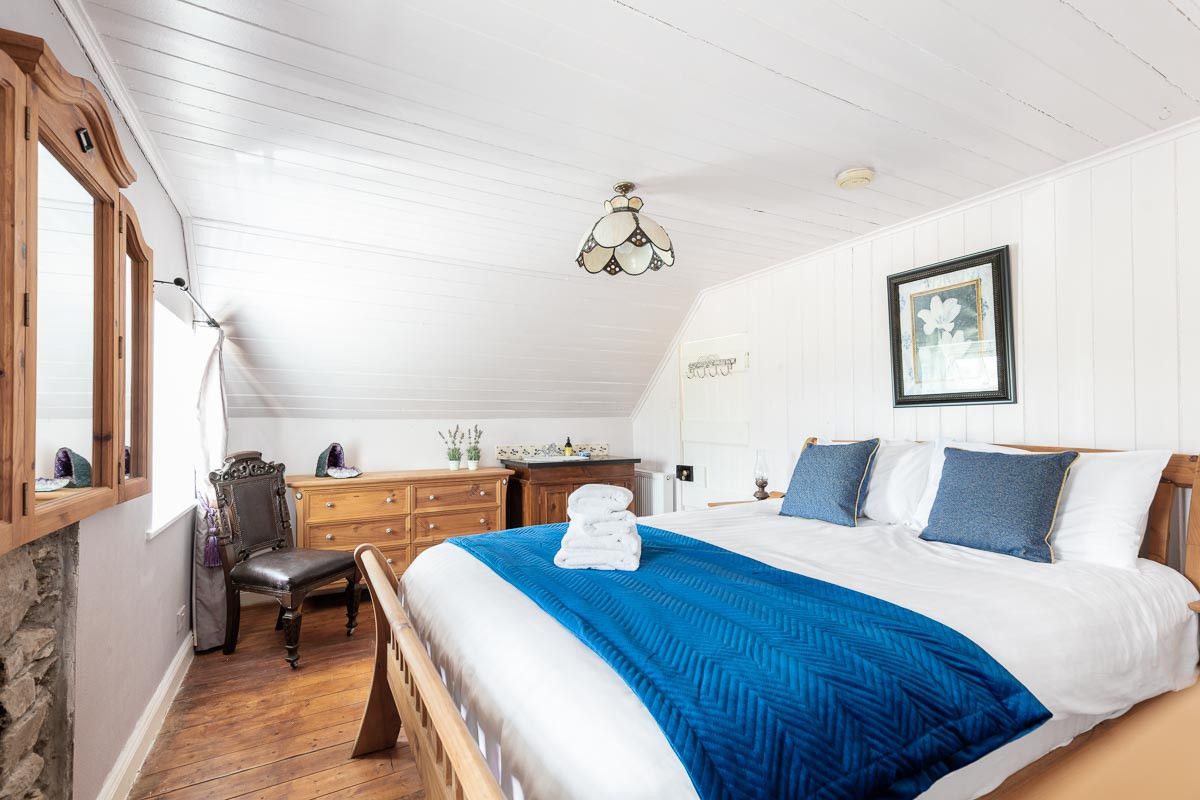On the ground floor, just off the sitting room is a restful double room with a queen-size bed its own fireplace and tiled floors. This room is perfect if you do not wish to use stairs at all as there is a family bathroom on the ground floor