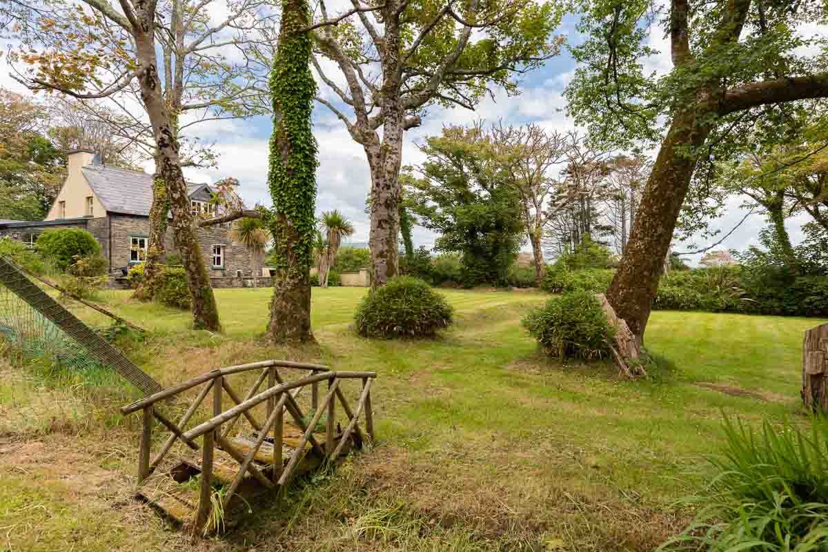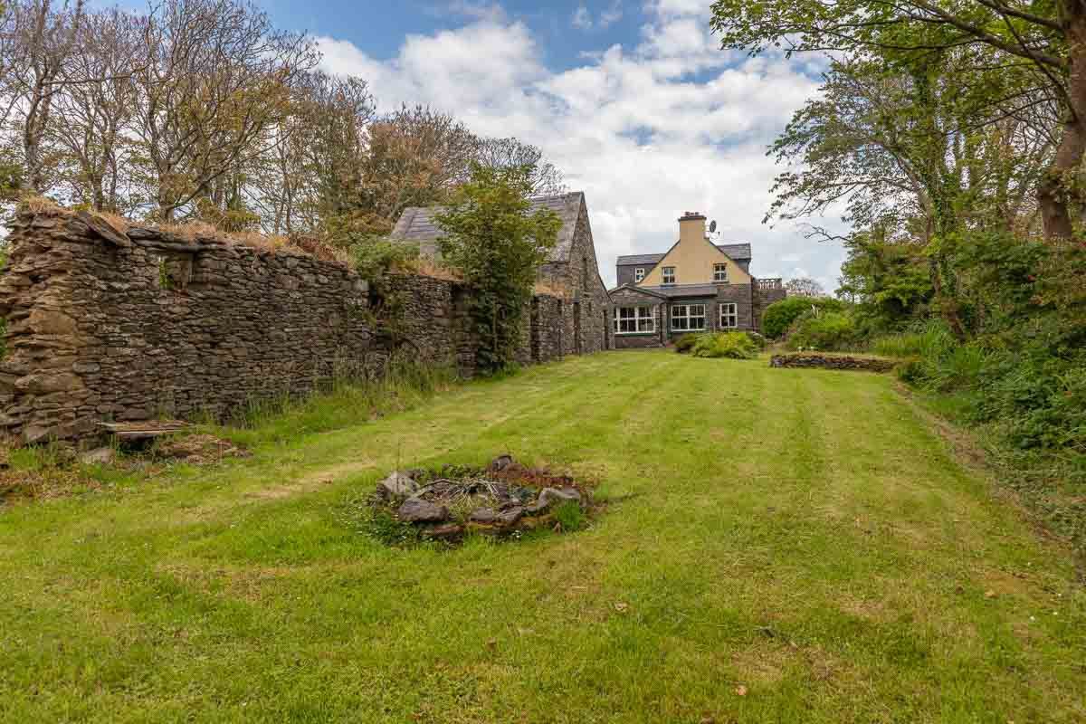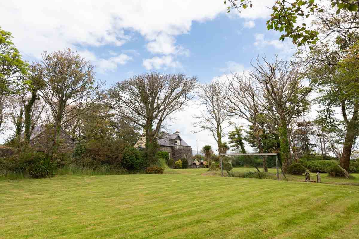 A long driveway leads to the house. There is ample parking and outdoor space. With one bedroom at ground floor level, the house is accessible for anyone with walking difficulties. There are steps from the patio down to the lawn area.