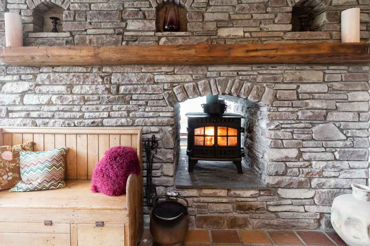 Entering into the main living area from the front porch, you immediately sense the warm and cosy atmosphere of the house, with its feature stone wall, wood-burning stove and plush comfy couch and armchairs. The fireplace is double sided so the wood burning stove can be enjoyed from the sunroom which has a dining table for six and second cosy lounge area.