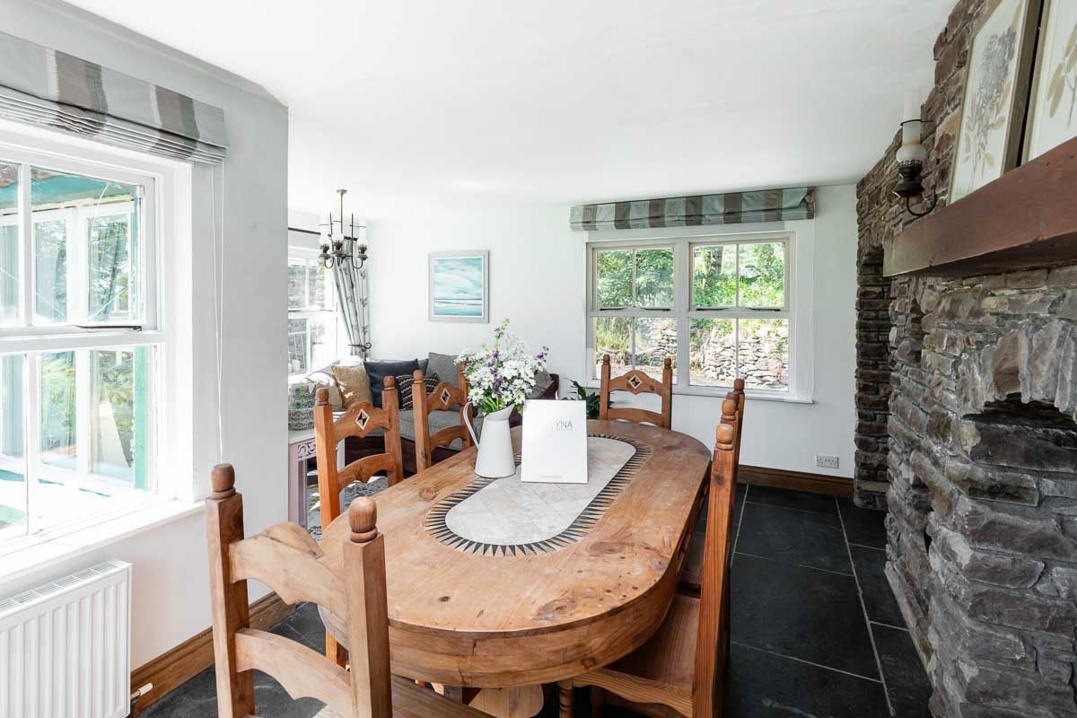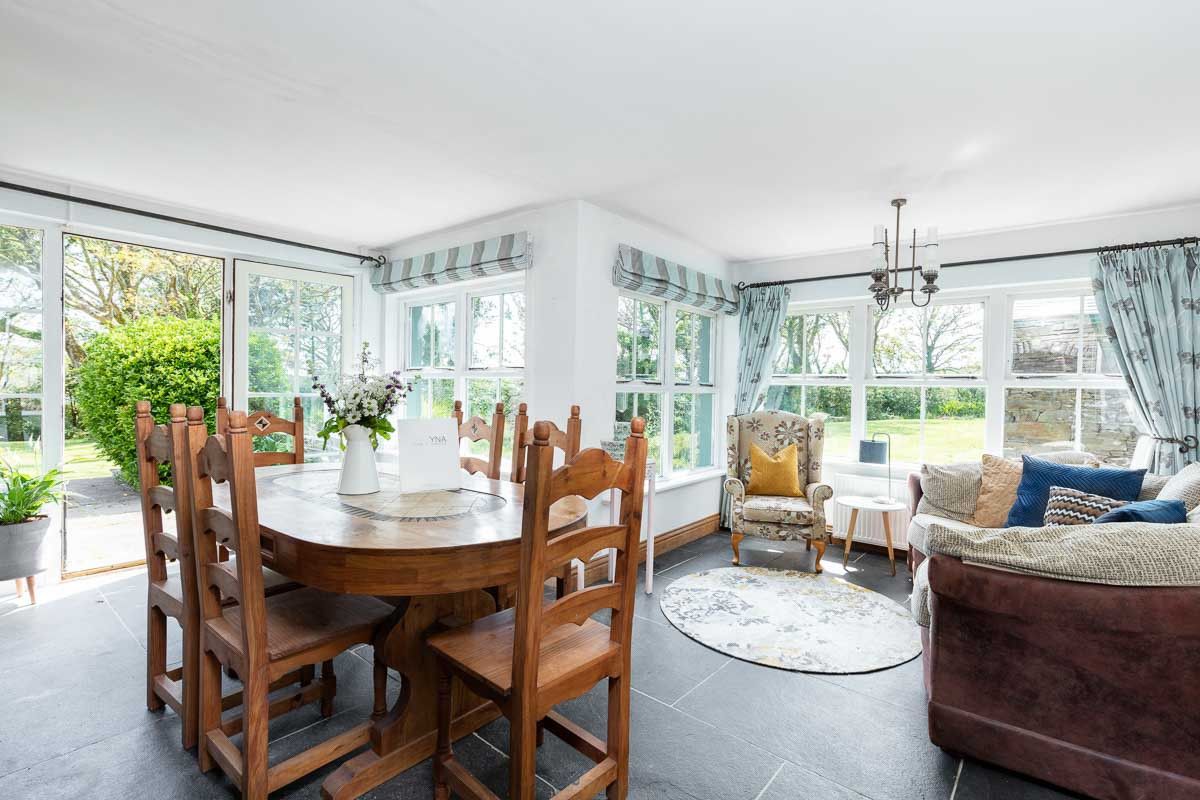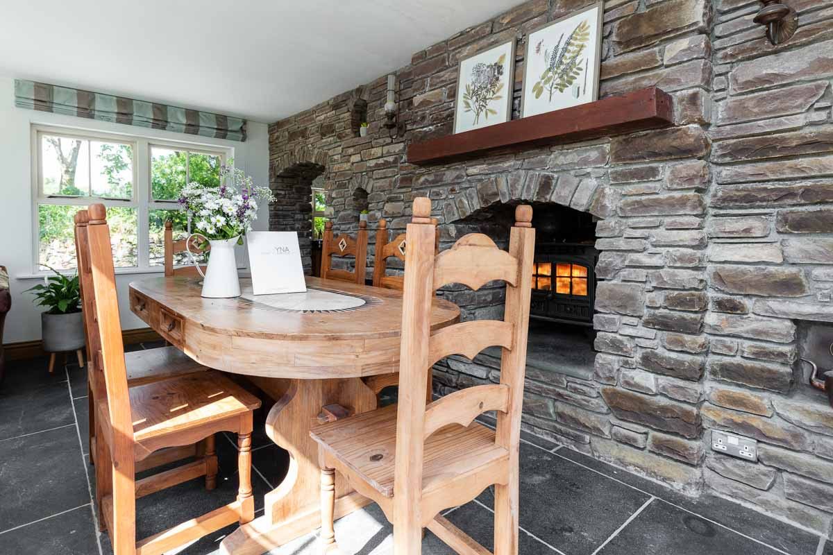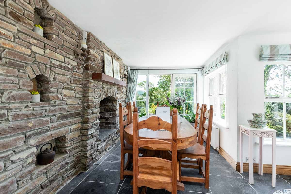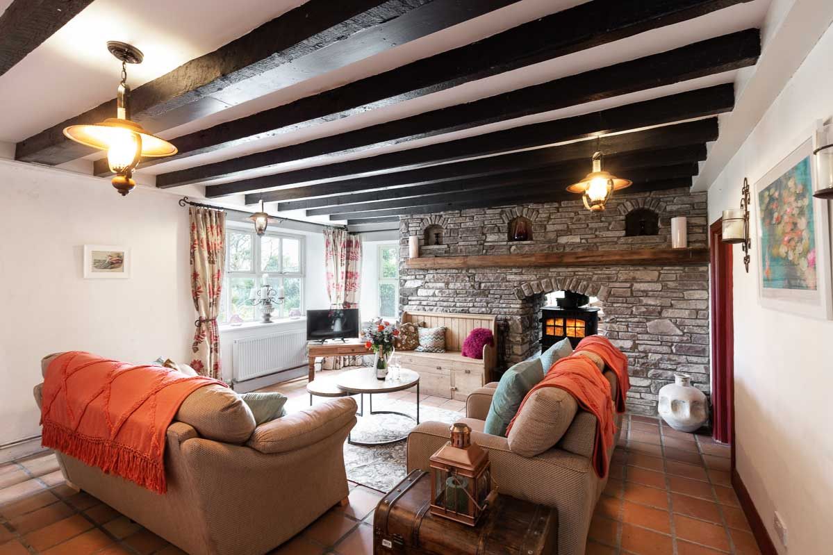 The kitchen is homely and rustic with everything you could need, including a Belfast sink, dishwasher, double oven, microwave and electric hob. A tiled floor and wooden units are modern, but perfectly in step with the unspoiled charm of this historical holiday home. There is a separate utility room on the ground floor with washing machine, dryer and ample storage space for outdoor equipment—you can also access this from a back door. The kitchen leads through to sunroom over-looking the garden with dining table for six and extra lounge area.