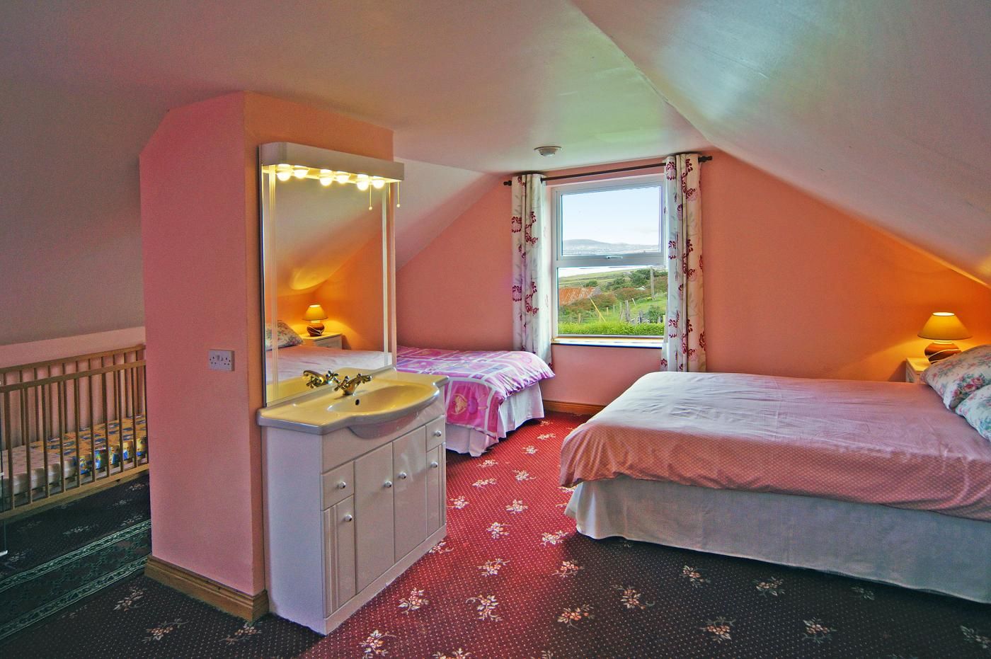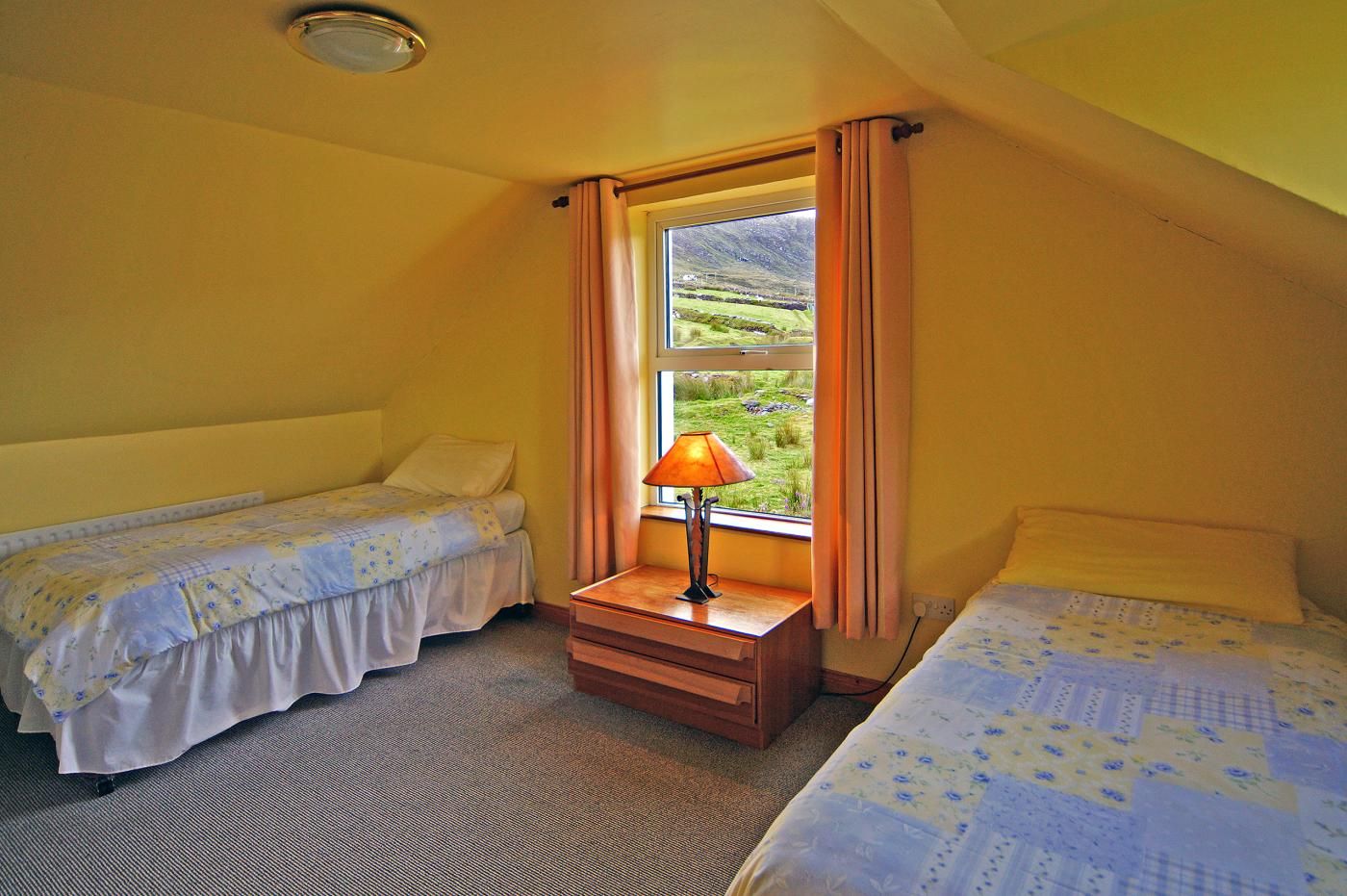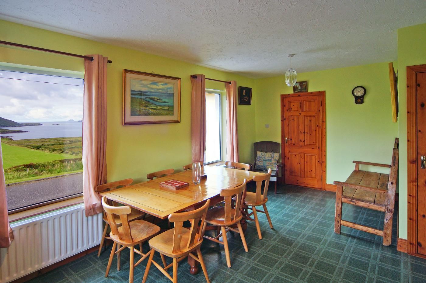 This quirky dormer bungalow sits on the slopes of Cahernageeha Mountain, with magnificent views over Ballinskelligs Bay towards the Skellig Rocks and Hog's Head.