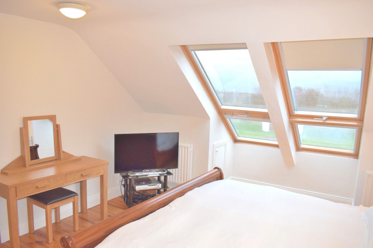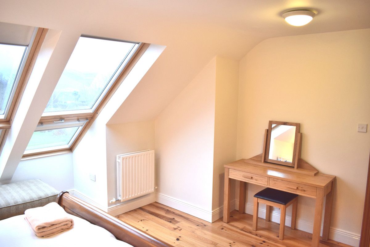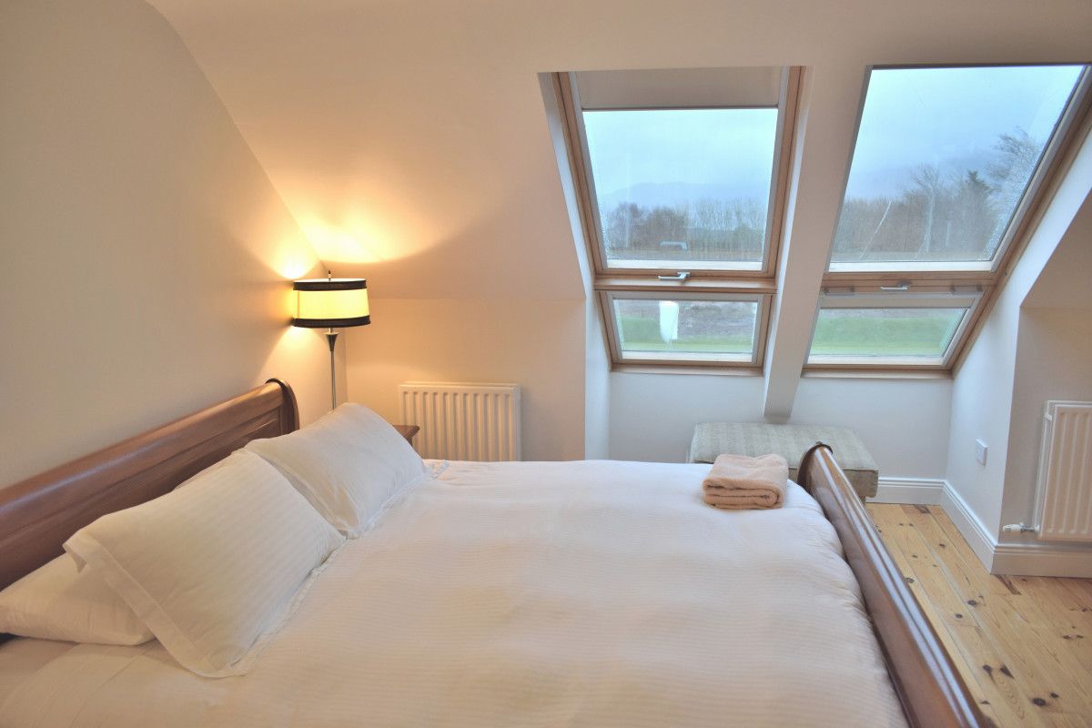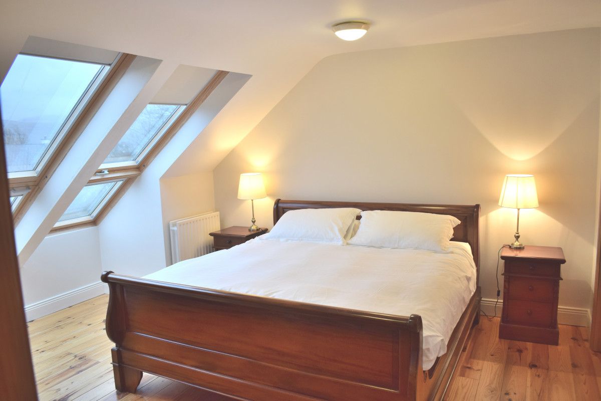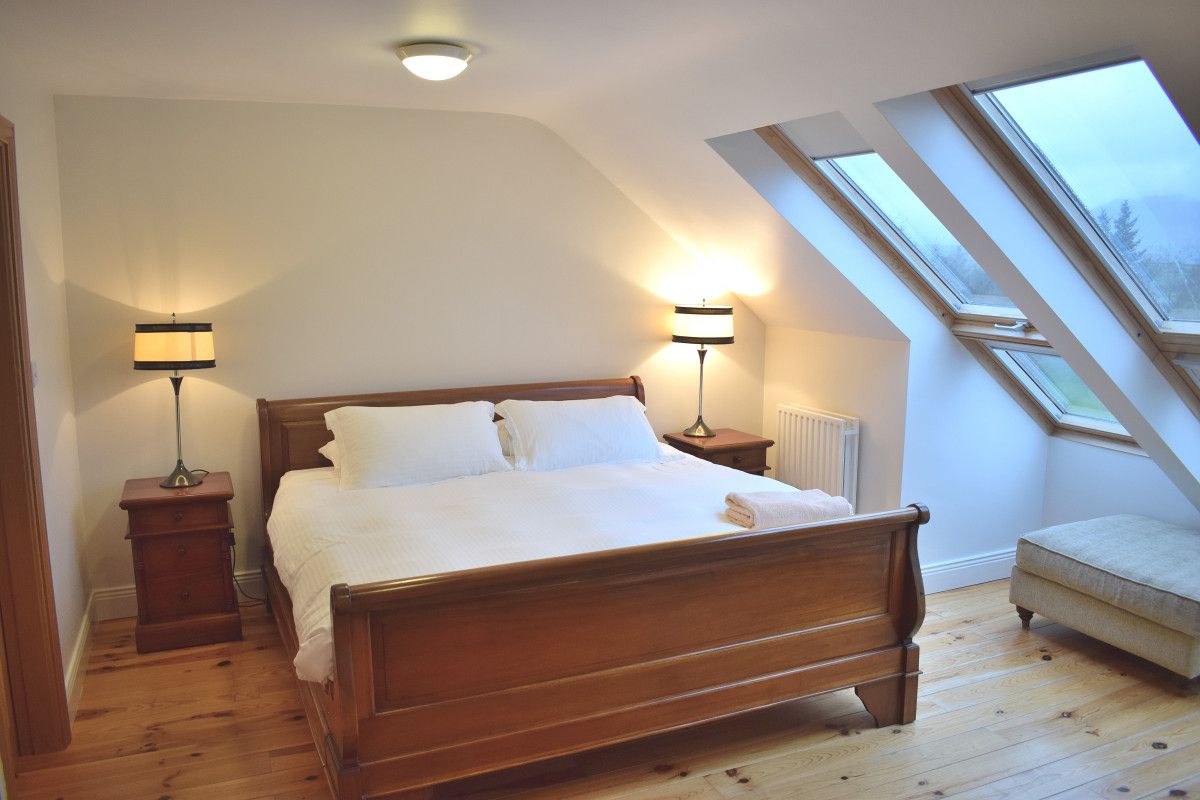 Thetwo main bedrooms upstairshave 6\' wide x 6\'8\'\' ( super-king ) mahogany sleigh beds, with large double velux windows that open out into a balcony overlooking the mountains and Lough Currane, breath taking views.
