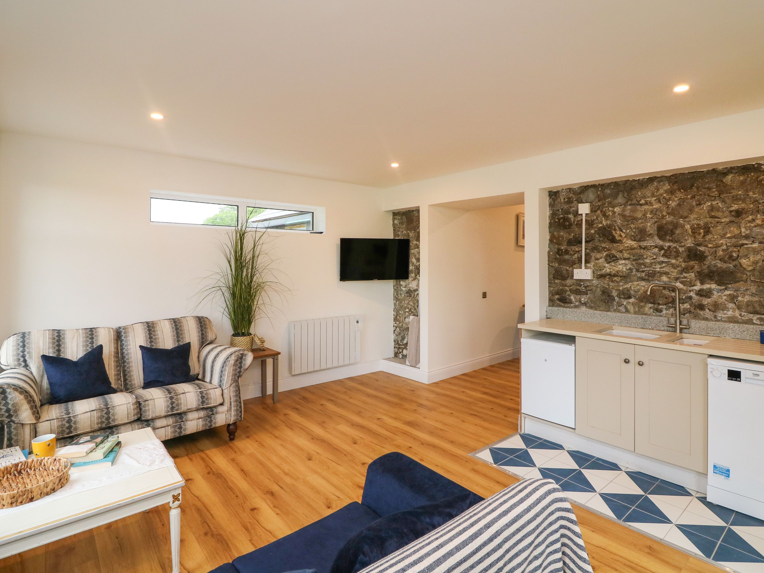 Amenities Electric central heating. Electric oven and hob, fridge, washing machine, dishwasher, kettle, toaster, coffee machine. Smart TV, WiFi. Fuel and power inc. in rent. Bed linen and towels inc. in rent. High chair and travel cot available. Off-road parking for 2 cars. Enclosed rear patio and furniture. Sorry, no pets allowed. Sorry, no smoking. Shop 0.8 miles, pub 0.9 miles, river 2.1 miles. Note: Next to owners house. Note: Check-in 3pm, check-out 11am