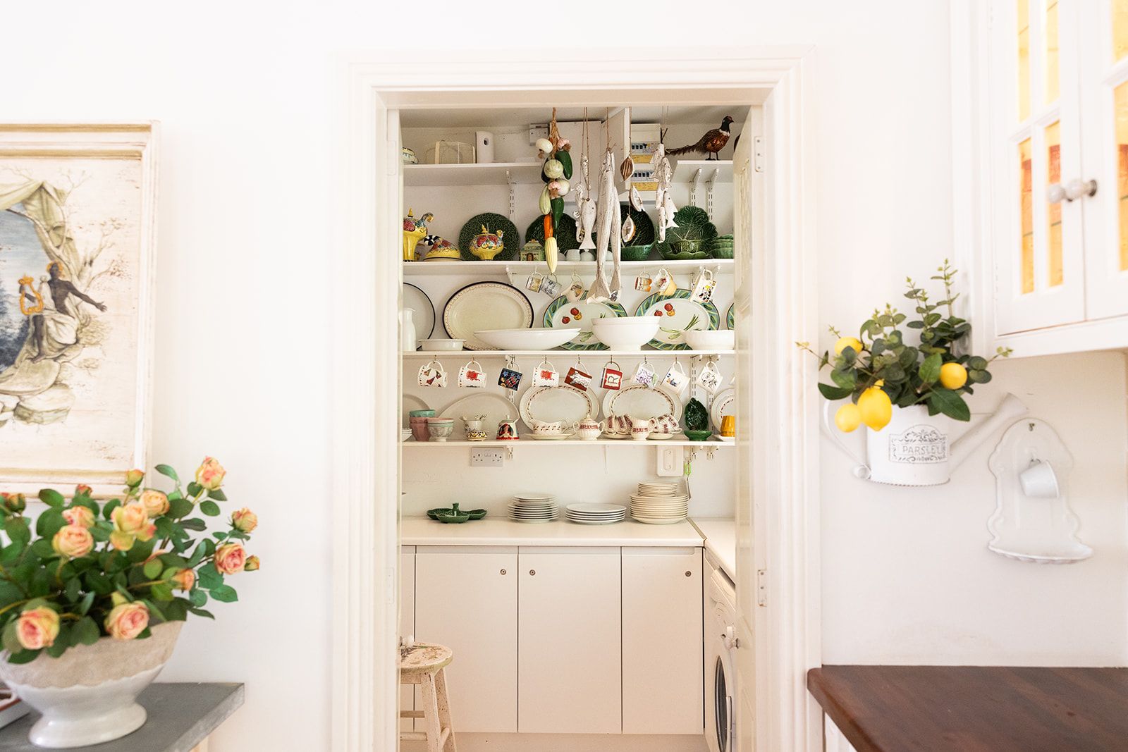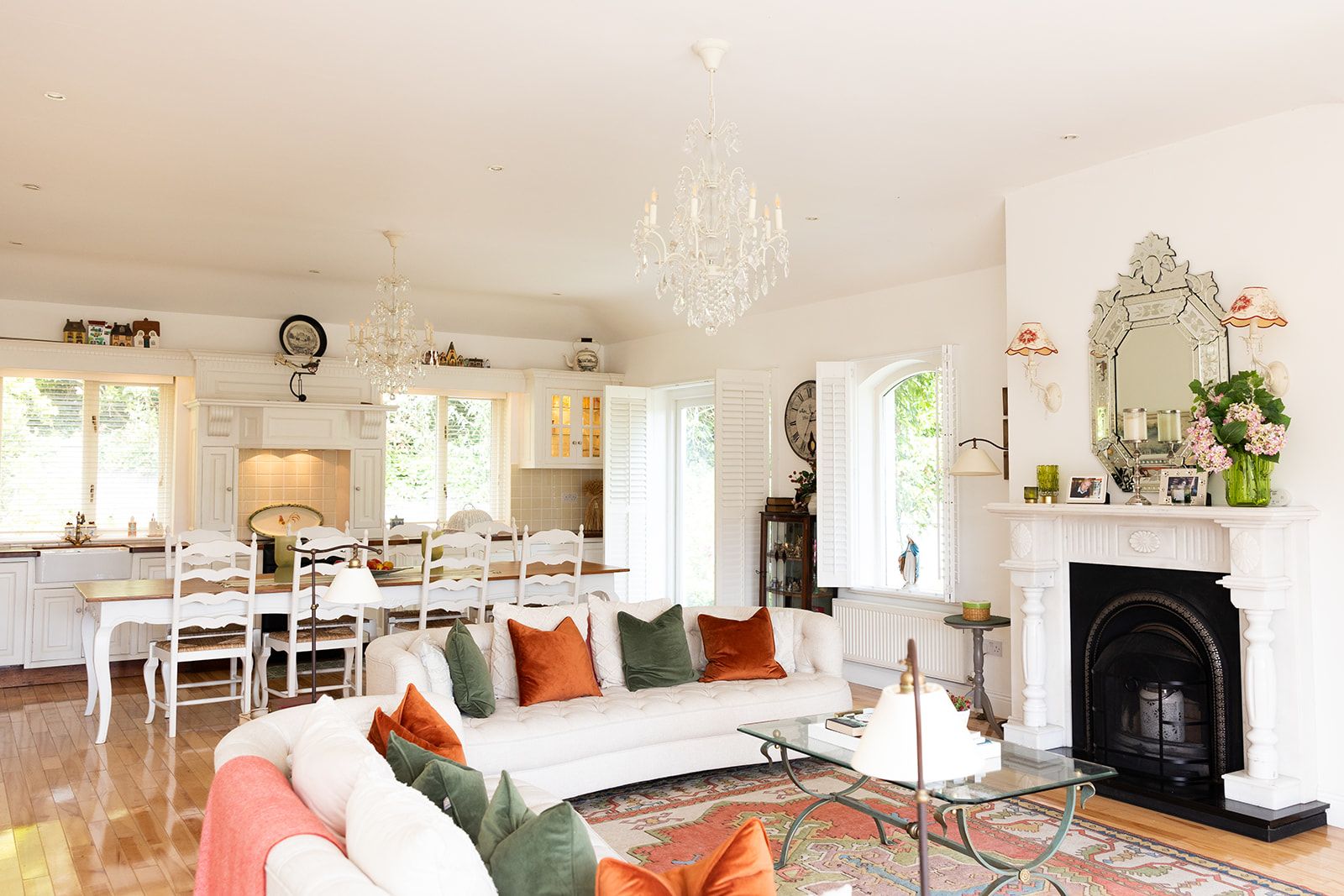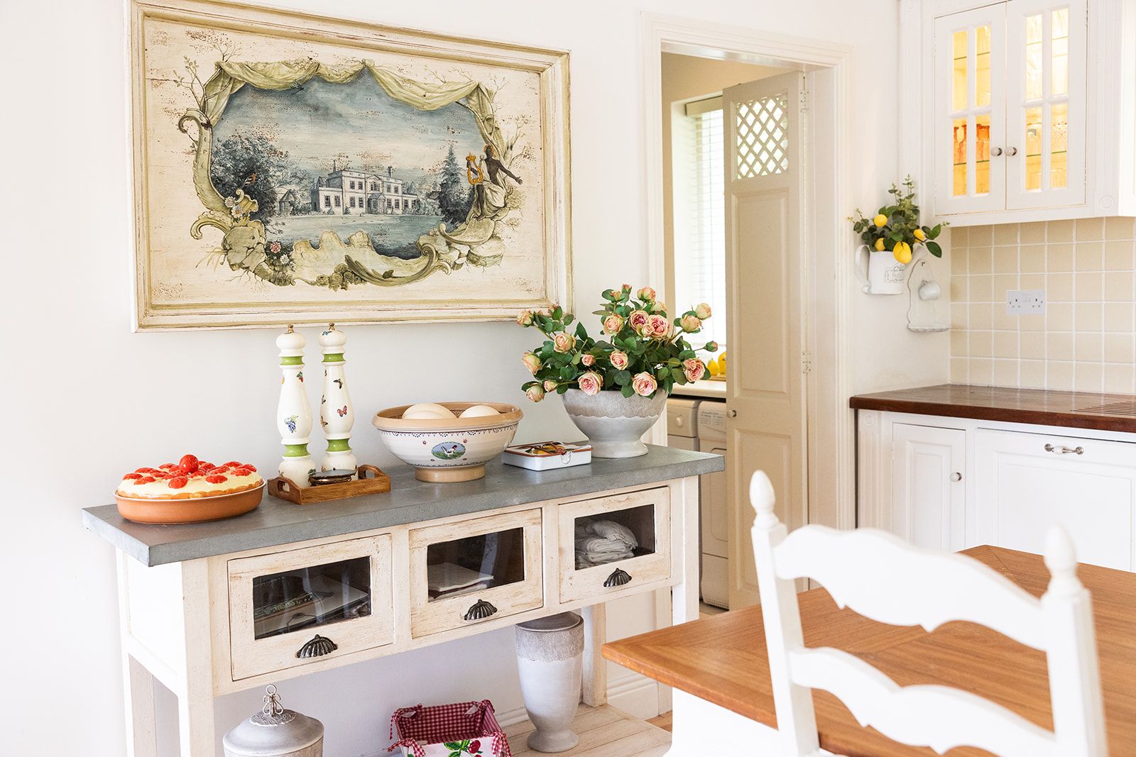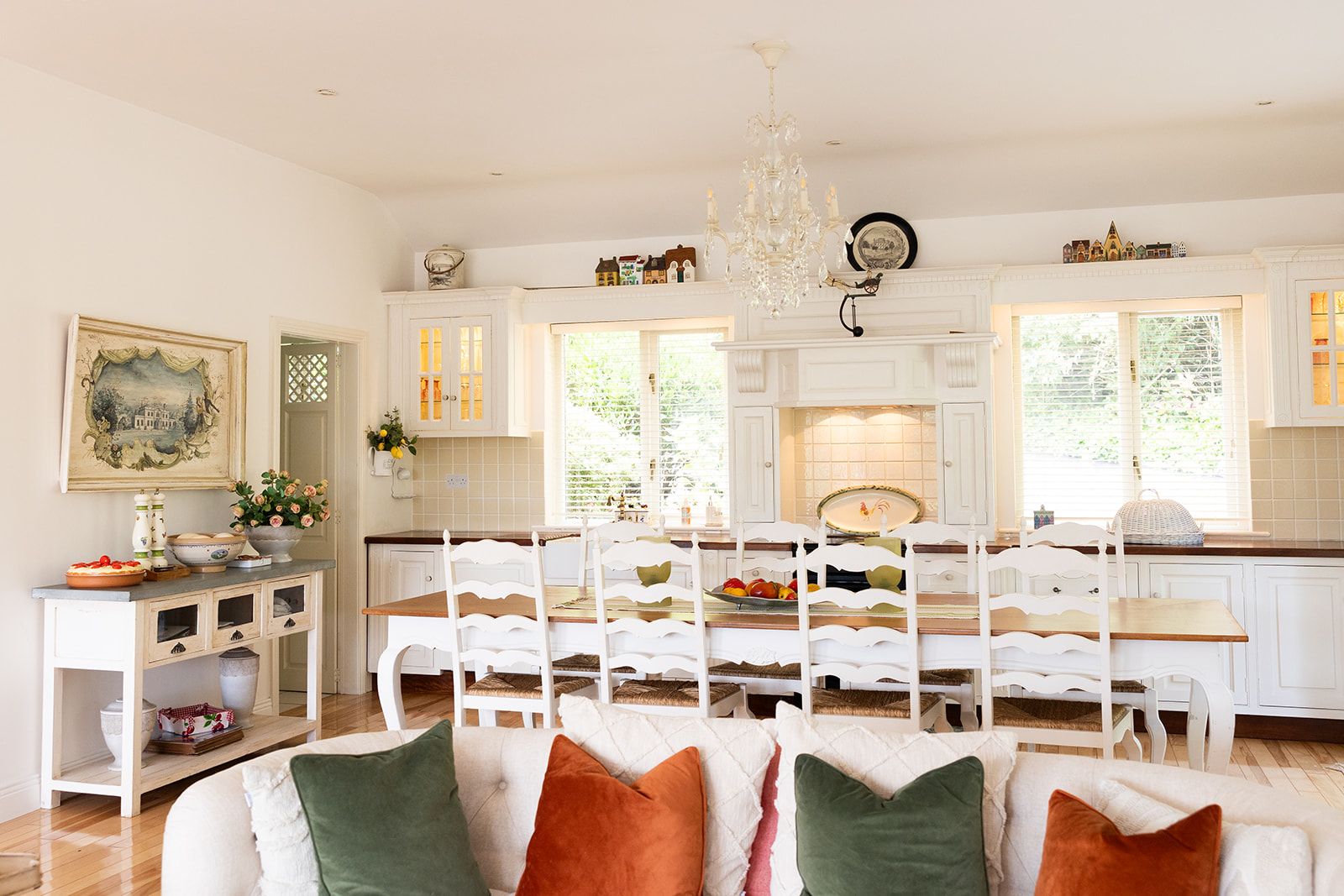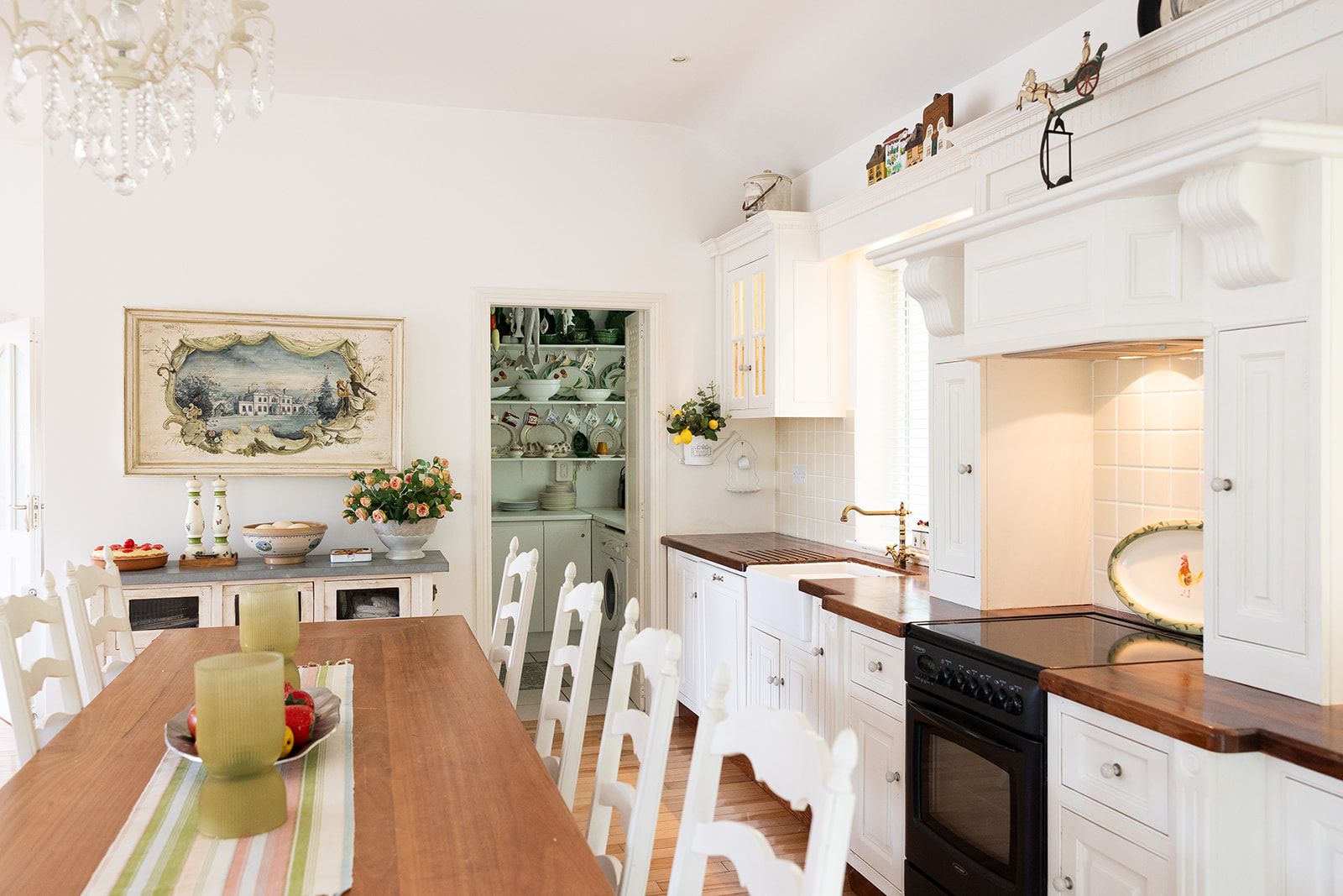 There is a great walk-in pantry, with fridge and freezer plus lots of storage as well as a huge dining table to sit around with all the family or to work from while looking out at the garden.