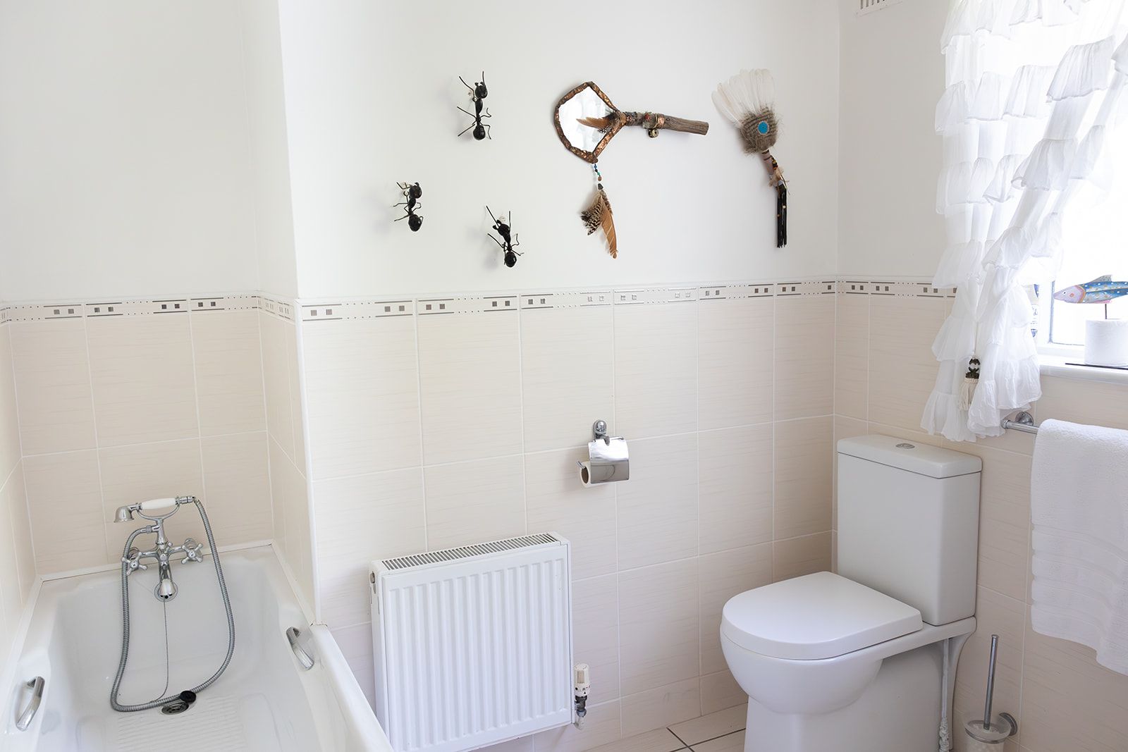 The ample main bathroom consists of a shower as well as a bath.