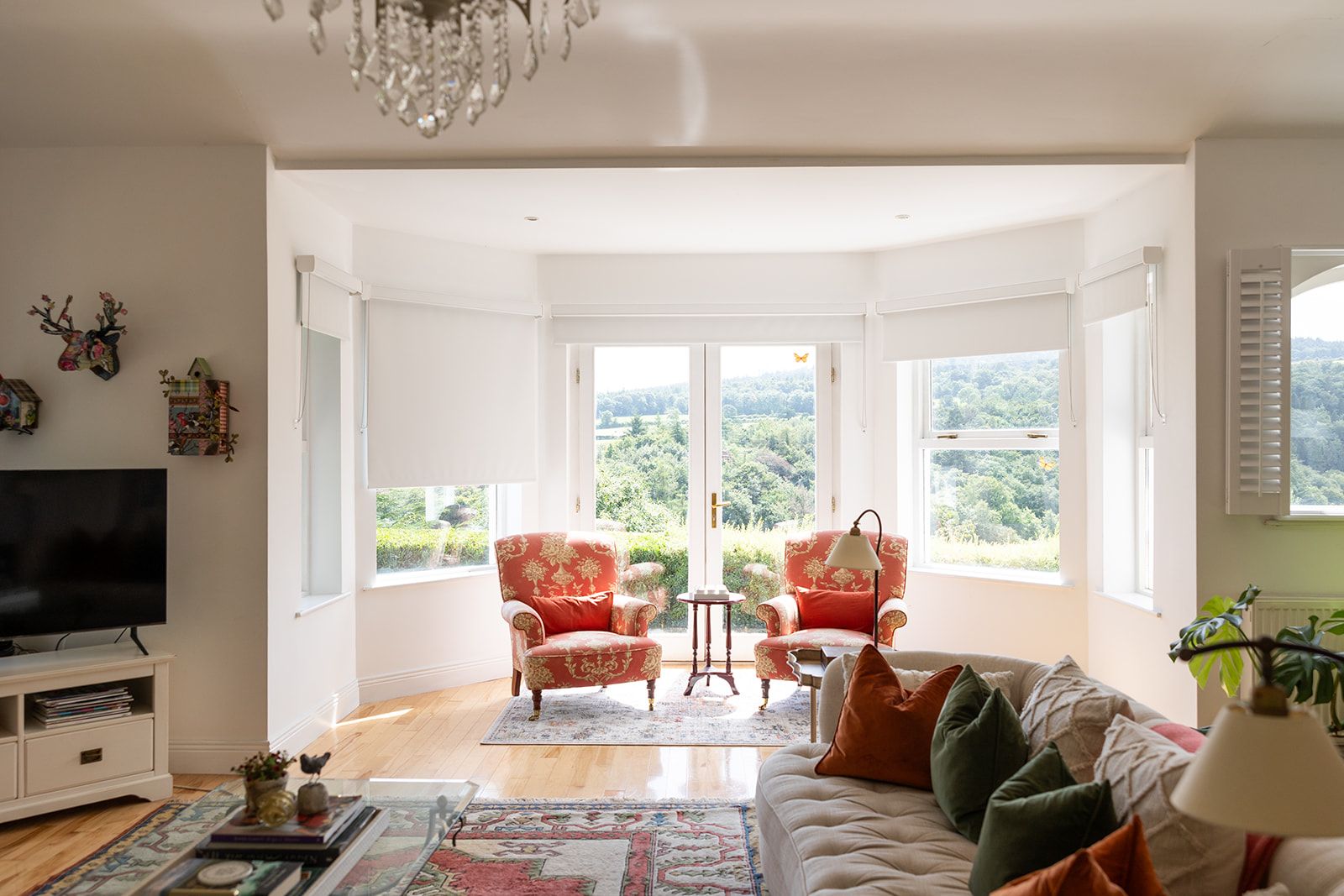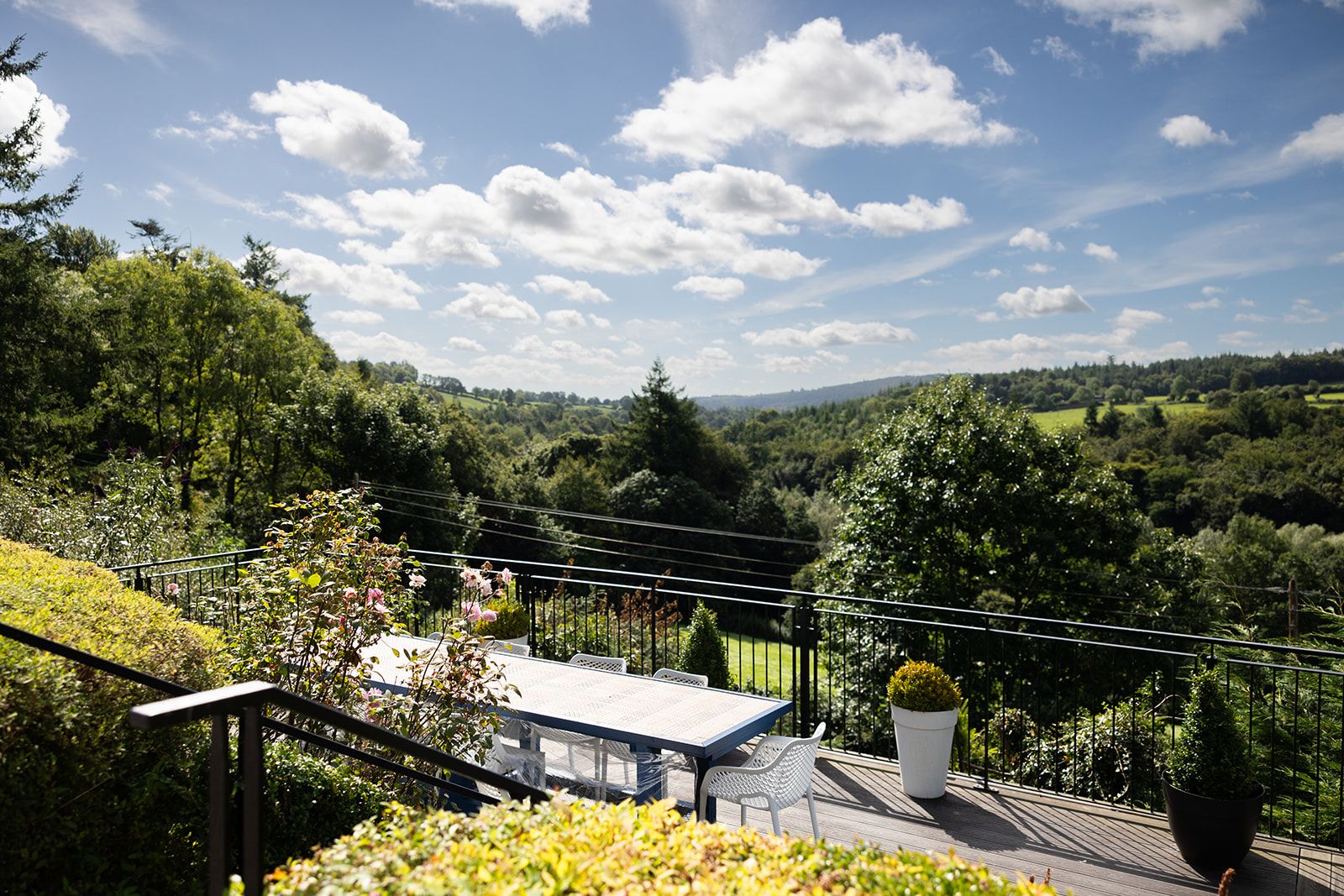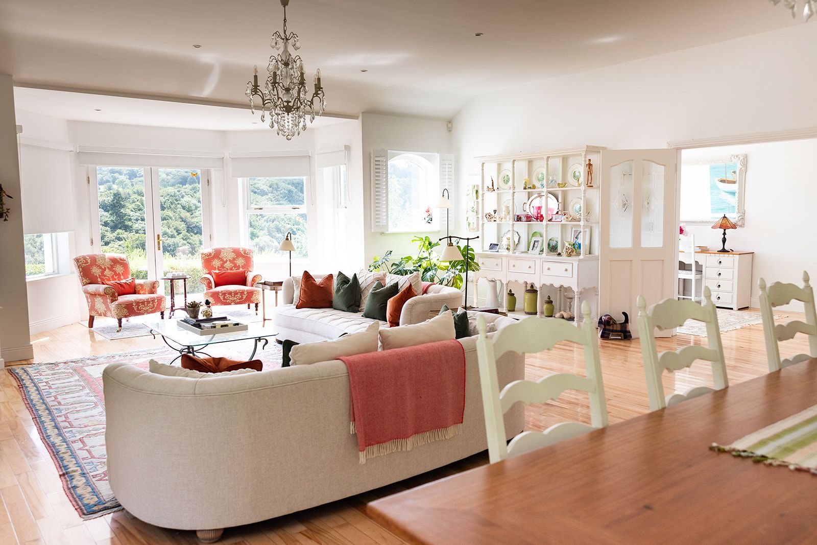 Boasting beautiful big windows and an elegant family feel, the house looks out on to the lush valley and stunning garden.