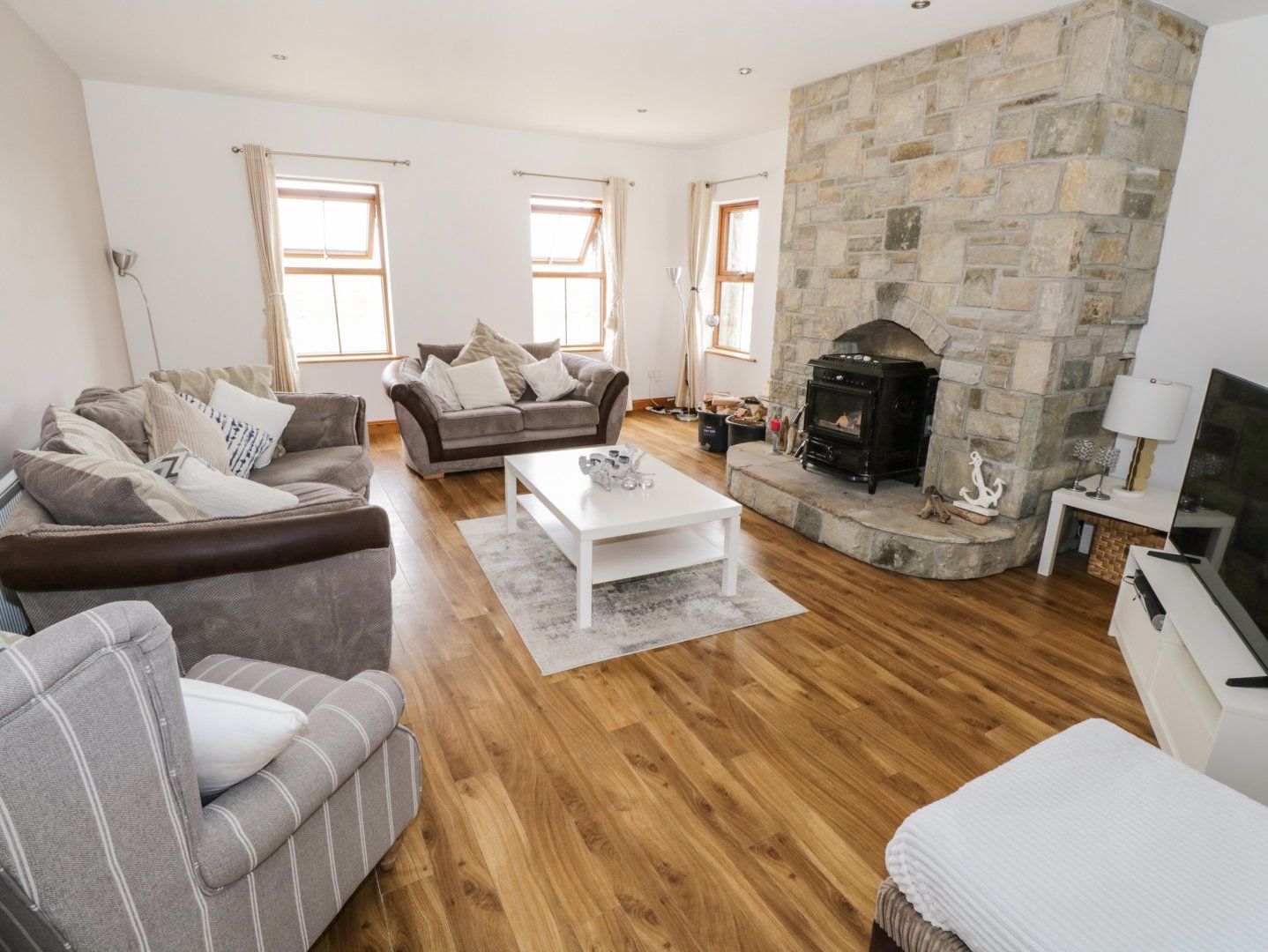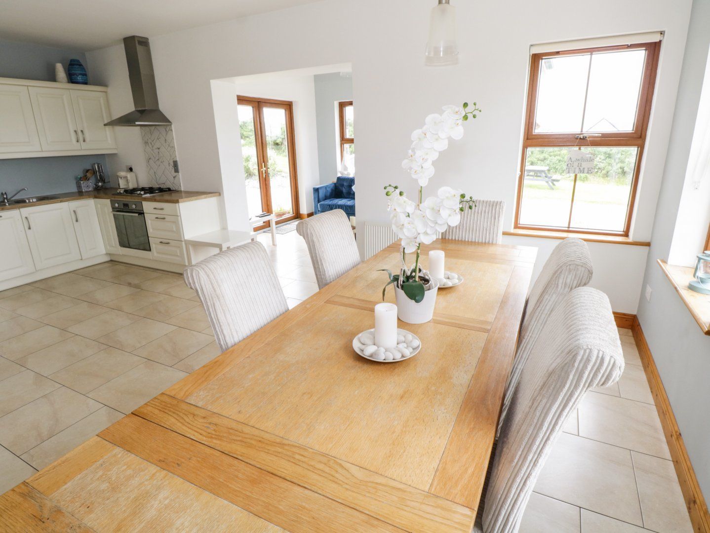 Holiday home The living areas in this property consist of a kitchen/diner with an electric oven, gas hob, microwave, fridge/freezer, and dishwasher, a utility with washing machine and tumble dryer, a sitting room with Sky TV and woodburning stove, and a sunroom with Sky TV. The bedrooms consist of a ground-floor double with TV and en-suite, a further two doubles, one on the ground-floor, and two family rooms, one on the ground-floor, along with a bathroom and a ground-floor shower room. Outside there is a front lawn, a rear garden with furniture and barbecue, and off-road parking for four cars. Travel cot available. One well-behaved dog welcomed, but sorry, no smoking. You'll find a shop in 1.1 miles and a pub in 1.4 miles. WiFi, fuel, power, bed linen and towels are all included in the price. TALLAGH ROAD is rurally located to explore County Mayo.