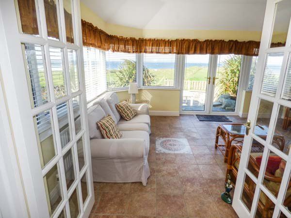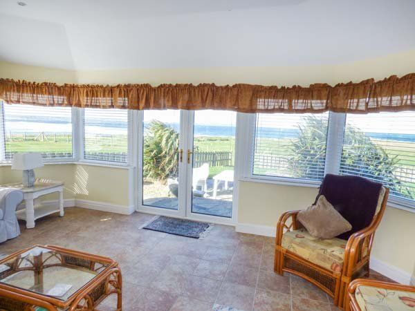 We have just returned from a week's holiday. My sister in laws and brother in law stayed the first 3 nights, then our 2 daughters, their partners and 2 baby grandchildren came. The place is so spacious with a large conservatory and amazing views over the bay. There are toys for the children, games and lots of glasses and crockery to keep the dishwasher happy. The manageress could not be more helpful and lives a few houses away if needed, but we had no problems especially as there is a booklet that very clearly outlines how everything works. We were lucky with the weather and able to experience the amazing sunsets on our first three days but unfortunately it was then cloudy later in the week. The house is the last one on Pier Road and has its own track on to the rocky beach. It is about a mile from Inniscrone, but there is a good cliff top footpath to the resort. Nearby is a swimming pool with slides ( you have to wear swimming caps ) and there is an excellent pitch and putt course in the centre. Traceys cafe serves great coffee and snacks. The Ocean Sands hotel has a good early diner offer up to 18.30 which suited us when we had the children. Nearby Ballina is good for the shops. For food shopping there is a Tesco, Dunnes and 2 Lidls. There are also 2 or 3 convenience stores in Inniscrone. Knock airport is about an hours drive so if you are a large party you would have to be lucky to find better value for money accomodation.