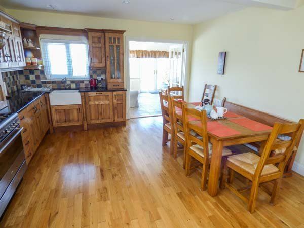 Oil fired central heating with open fire. Electric oven, gas hob, microwave, fridge/freezer, washing machine, tumble dryer, dishwasher, TV with Saorview, WiFi, selection of books and games. Fuel, power and starter pack for fire inc. in rent. Bed linen and towels inc. in rent. Travel cot and highchair. Off road parking for 4 cars. Front lawned garden. Rear and side enclosed lawned gardens with patio, furniture and BBQ. Sorry, no pets and no smoking. Shop and pub 1 mile. Beach 2 mins walk. Note: Care to be taken on landing bedroom due to open stairs.