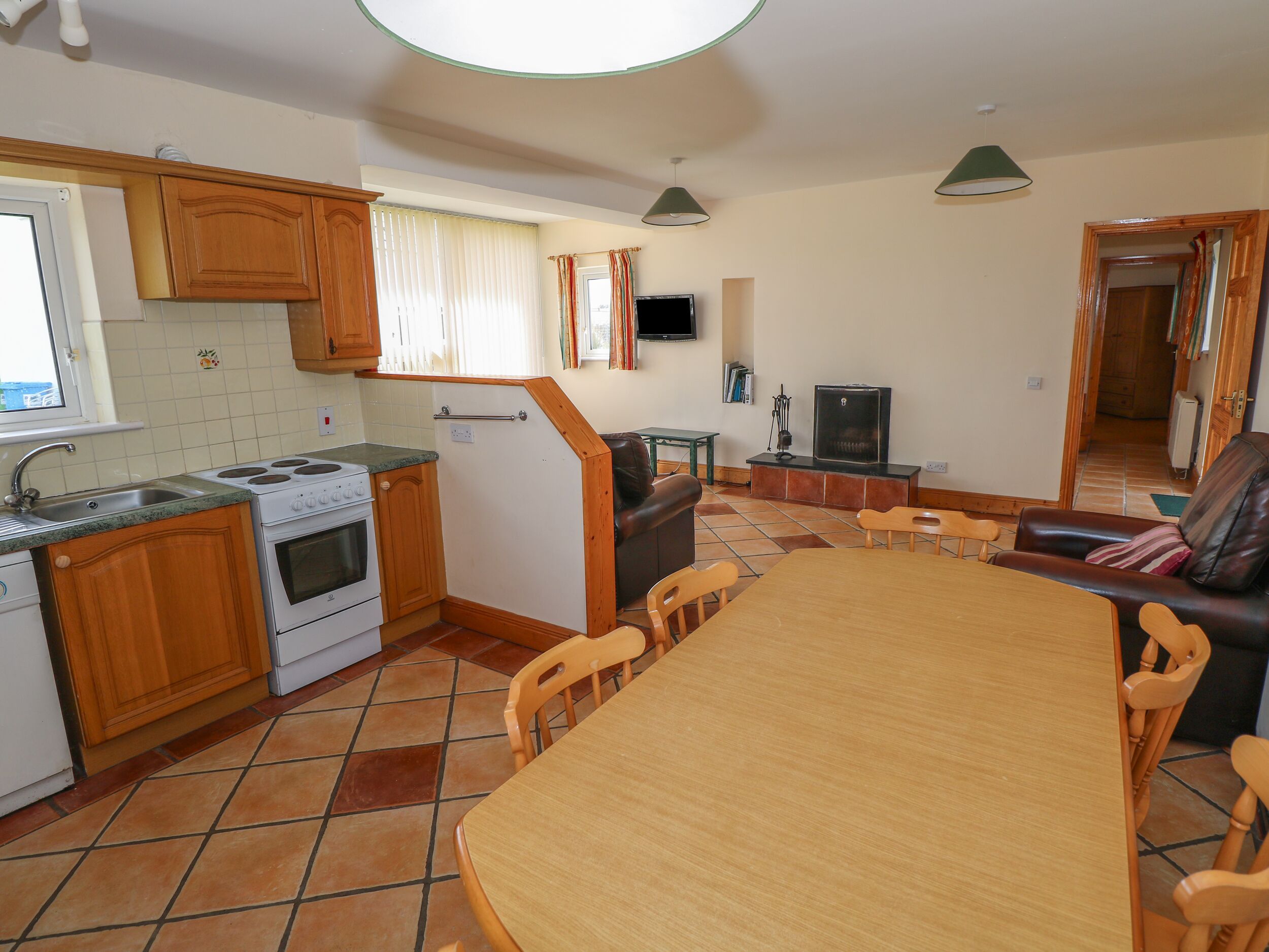 Accomodation Details Three bedrooms: 1 x ground-floor double with en-suite bath, shower over, basin, and WC, 2 x twin. Shower room with walk-in shower, basin, WC. Open-plan living space with kitchen, dining area and sitting area with open fire. Utility