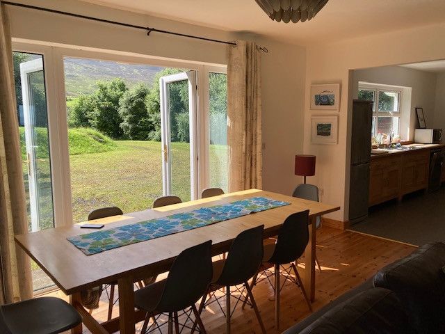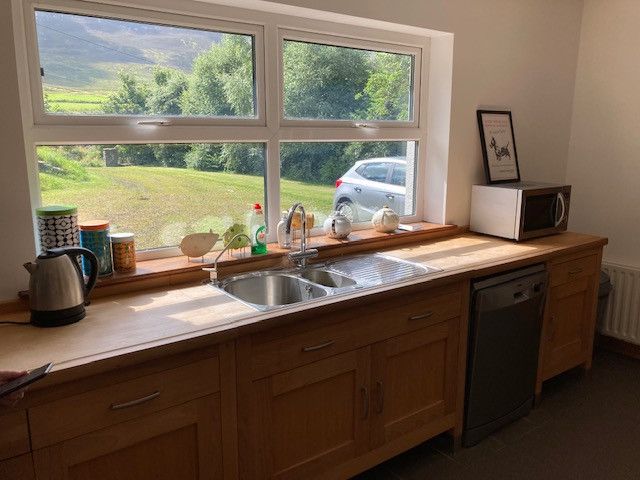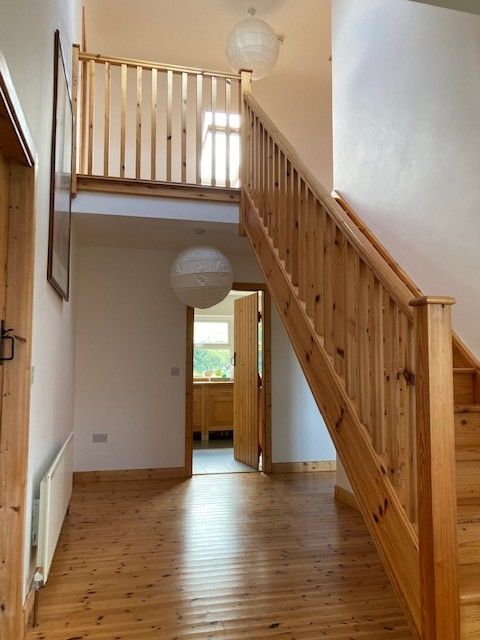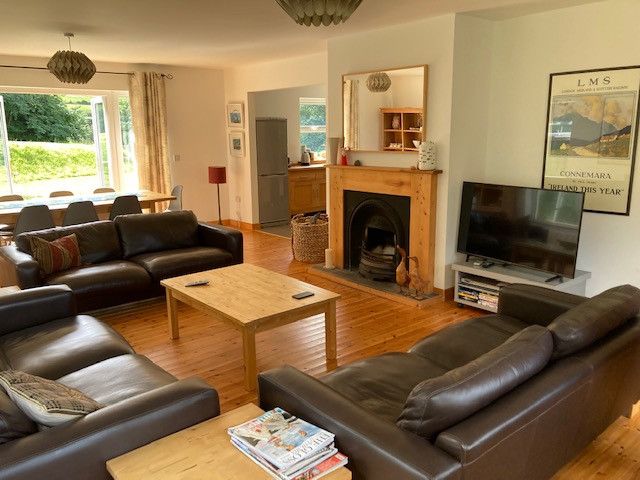 Inside: This house has plenty of space for the whole family and lots of natural light. You walk in from the back to a great sized utility room with space for jackets & boots. From here you can head in large open plan kitchen, dining and living space. The country style kitchen has everything you could need to cook up a feast for the whole family. The dining area is flooded with natural light with double doors for that outdoor dining feeling. The large sitting area has comfy leather couches for you to enjoy a glass of wine in front of the open fire or to cosy up in front of the TV.