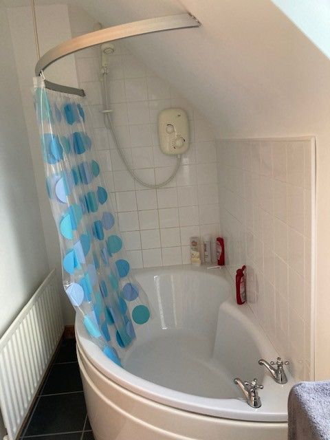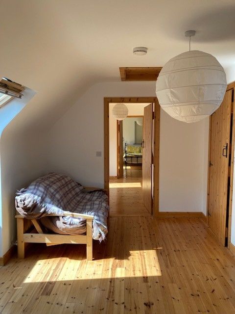 Also downstairs you will find another sitting room with TV and open fire & 2 bedrooms – a double & twin. There is a family bathroom with shower in the bath. Upstairs there is a large landing area with 2 large double bedrooms both en-suite.
