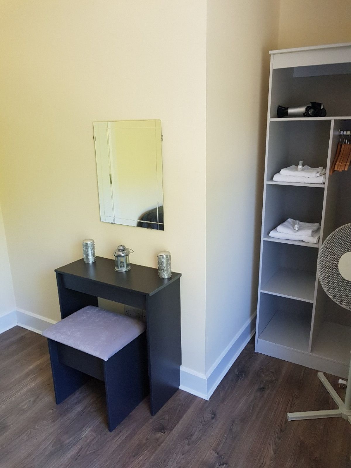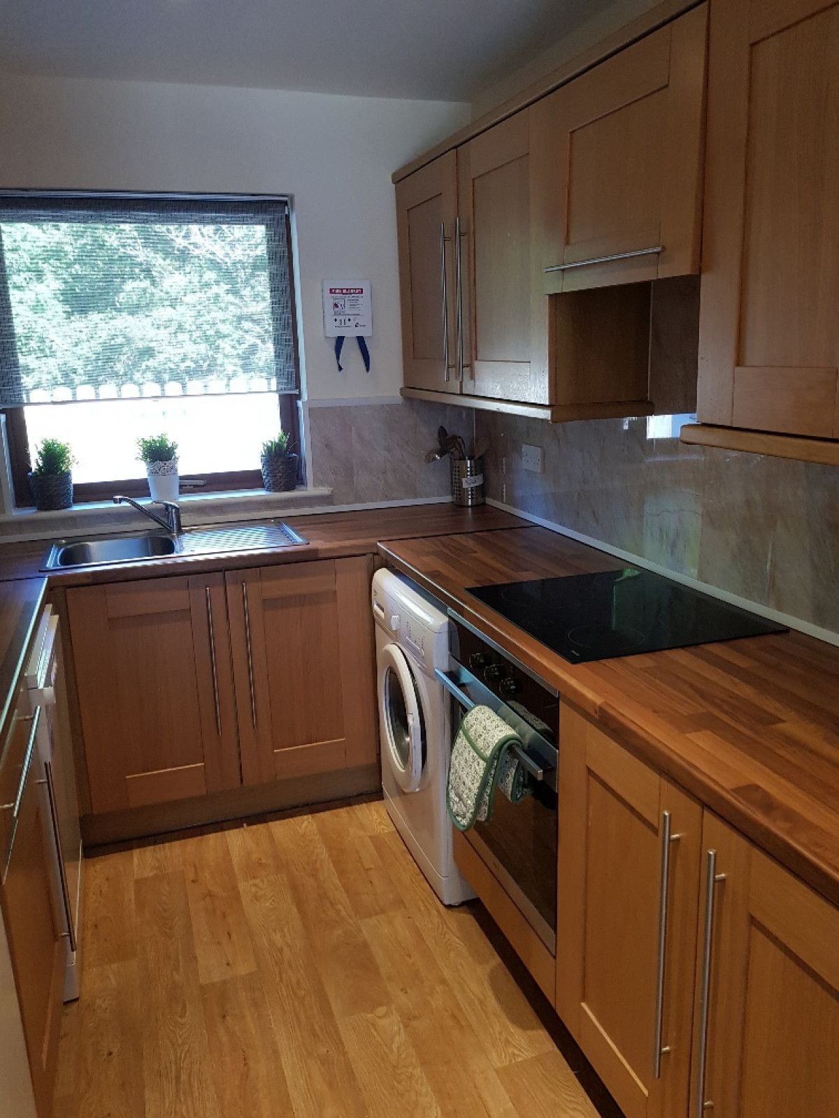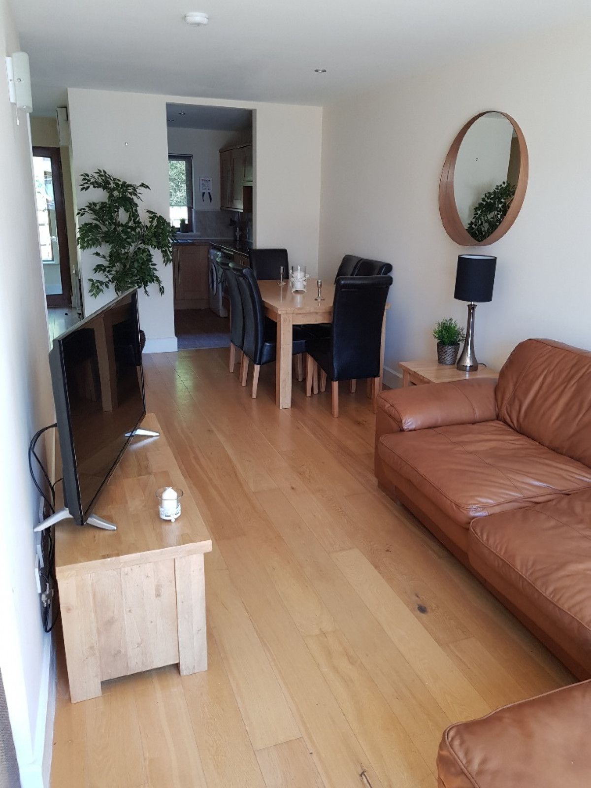 Large luxury leather sofa, 43" Smart tv with built in Satellite channels and Saorview. Dining table with six chairs, Children's high chair, Nest of tables, Ironing Facilities and Hardwood/Parquet floors,