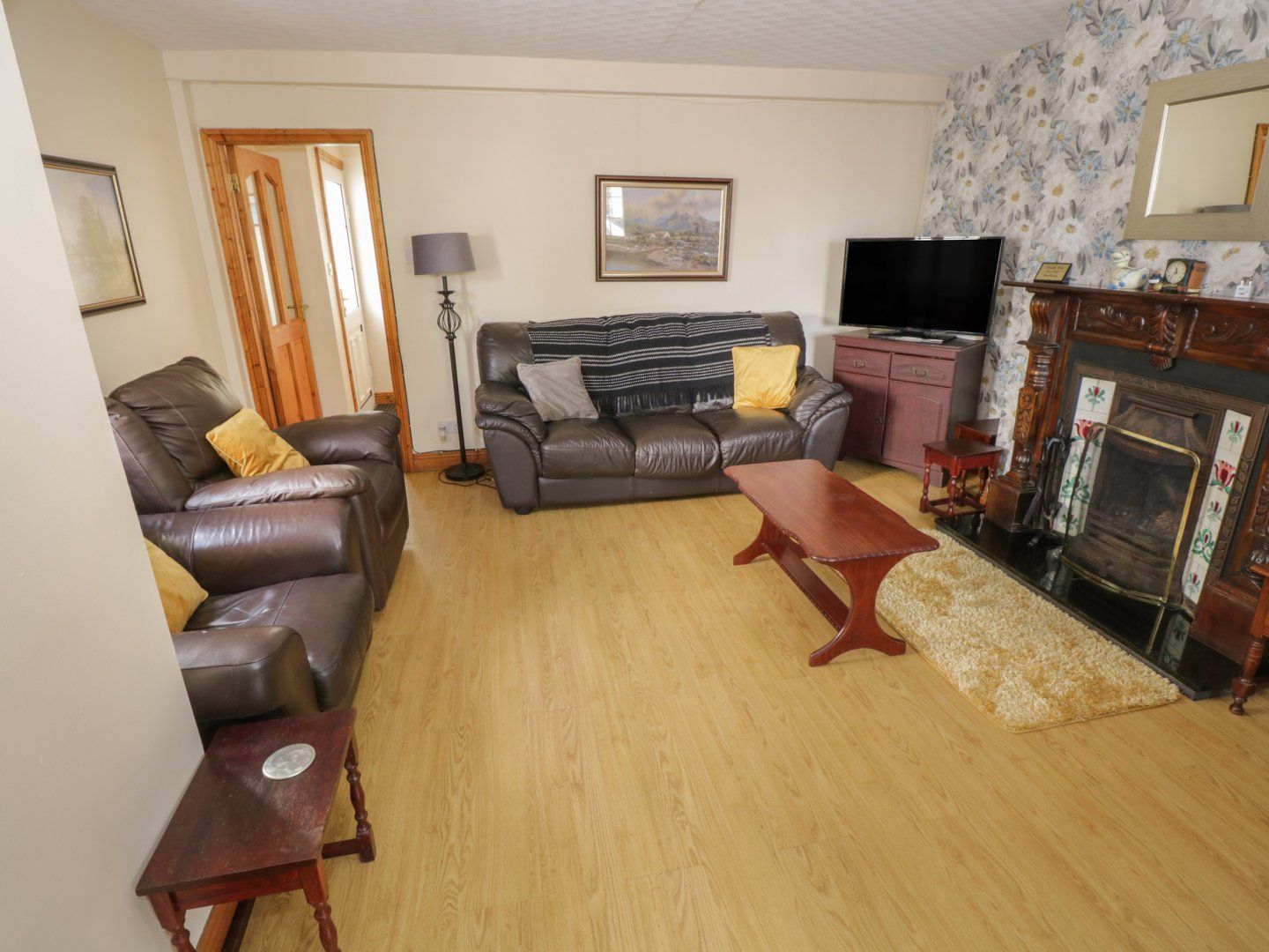 Amenities Oil central heating with open fire. Range with electric oven and gas hob, microwave, fridge, freezer, washing machine, dishwasher. TV with Freeview, DVD, WiFi, selection of books, games and DVDs. Fuel, power and starter pack for open fire inc. in rent. Bed linen and towels inc. in rent. Off-road parking for 3 cars. Rear garden with patio and furniture. One well-behaved dog welcome. Sorry, no smoking. Shop and pub 0.1 mile. Note: There is a step down from the hallway into the kitchen. Note: No Stag/hen or similar