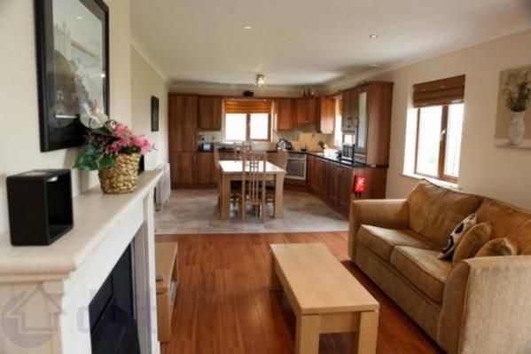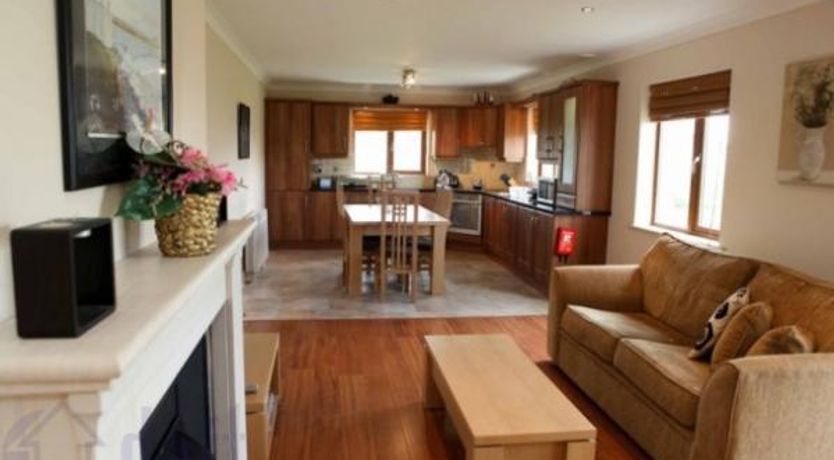 Weekend May & June 3 nights from €350***** Exclusive, Contemporary & Stylish 3 bedroom (2 en-suite) Holiday Home available in Enniscrone's favourite holiday village, Cahermore Holiday Village. This home is exceptionally well appointed and is undoubtedly YOUR HOME FROM HOME. **** This house has a welcoming spacious entrance hall, open plan kitchen/dining/living room with doors opening onto a spacious patio and extensive gardens. There is a double bedroom and seperate bathroom on the ground floor as well as a seperate utility. The first floor comprises of two further bedrooms (1double & 1twin) both en-suite and both rooms have stylish built in wardrobes. This house is ony minutes walk to the Pier and Beach and only minutes from Waterpoint. Centre of the vibrant village is 5-10 minutes walk. This is the first year this prestigious holiday homes has been available for letting.
