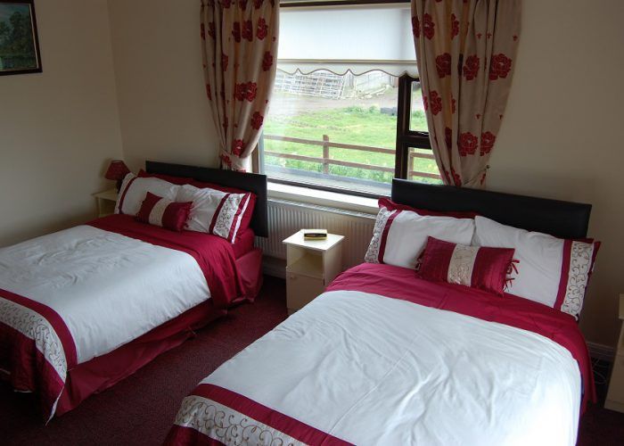 Ave Maria Bed and Breakfast is situated on a large working dairy farm: it offers the highest standard of bed and breakfast accommodation. It can be found in the village of Templeboy in County Sligo. When you stay here, enjoy home baking, tea or coffee on arrival.You can enjoy a visit to the farm and even see a calf born and watch the cows being milked. The bedrooms contain the following as standard: hair dryer, TV, electric alarm clock radio. This is non-smoking farmhouse, which has the following rooms: One double room ensuite, a twin room ensuite, twin rooms ensuite and a family room with a double and two single beds en suite.