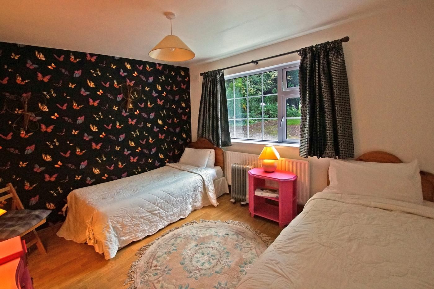 Set at the foot of the Knockmealdown Mountains on the grounds of a Georgian country house and working farm, this rural detached bungalow is ideal for a family of six or a group of friends seeking a nature getaway.