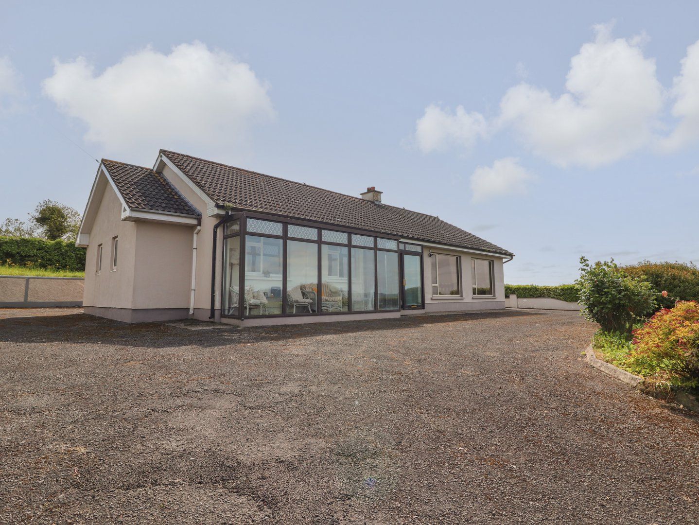 Holiday home The living areas in this single-storey property consists of a kitchen/diner equipped with electric oven and hob, microwave, solid-fuel stove and dining seating for four guests, a utility with fridge/freezer and a washing machine, a sitting room with TV and electric fire and a conservatory. The bedrooms consist of a double with en-suite bathroom, a double and two singles, one with an en-suite shower room, along with a bathroom and shower room. Outside there is a private rear patio with furniture, and off-road parking is available. Within 0.5 miles you will find a shop and within 0.4 miles, a pub and please note that this is a pet-free and non-smoking property. WiFi, fuel, power, bed linen and towels are all included in the price. A travel cot and highchair are also available. Escape to Shannon View for a memorable trip to Ireland. The charging of EV cars at the property not allowed