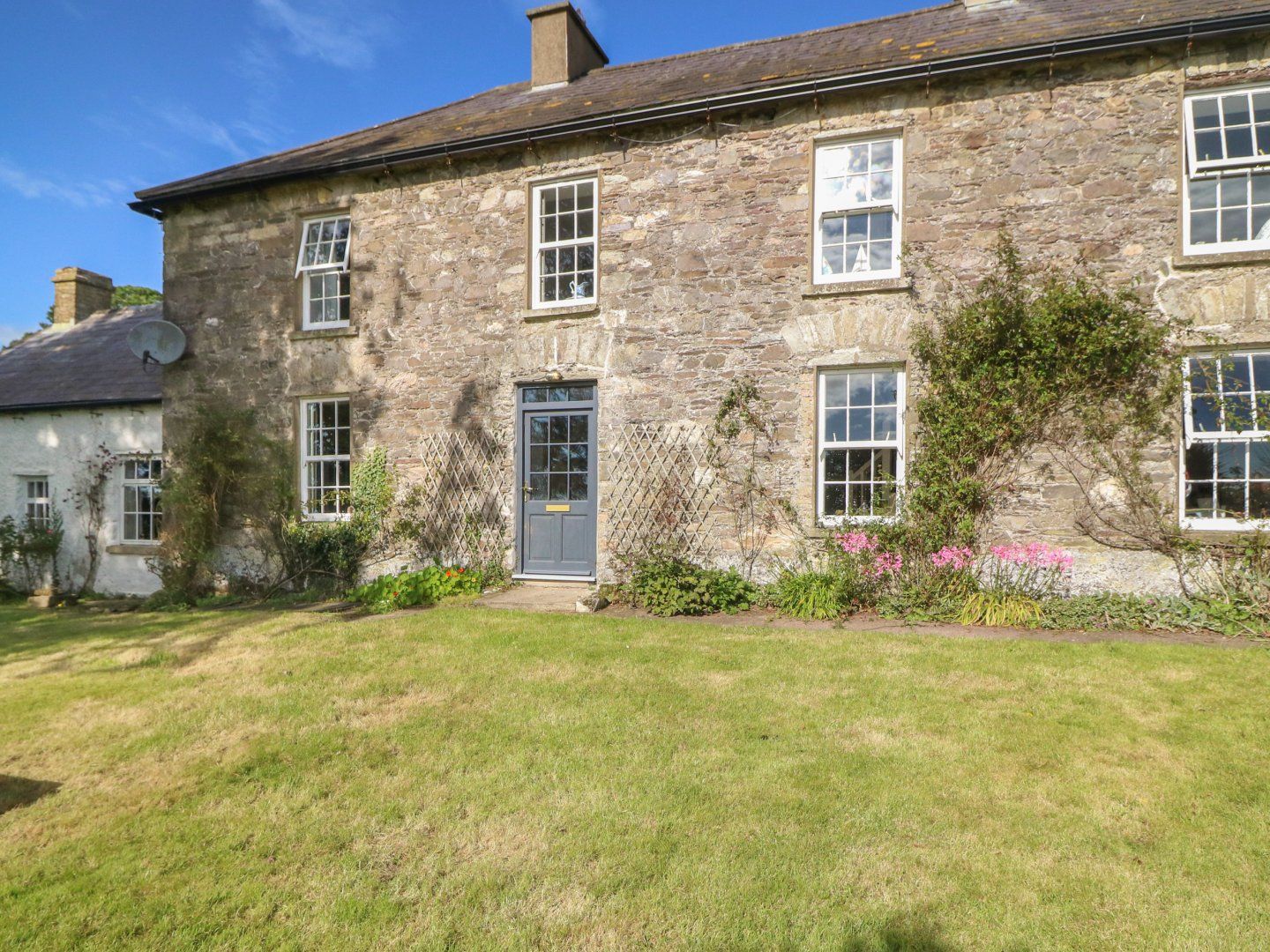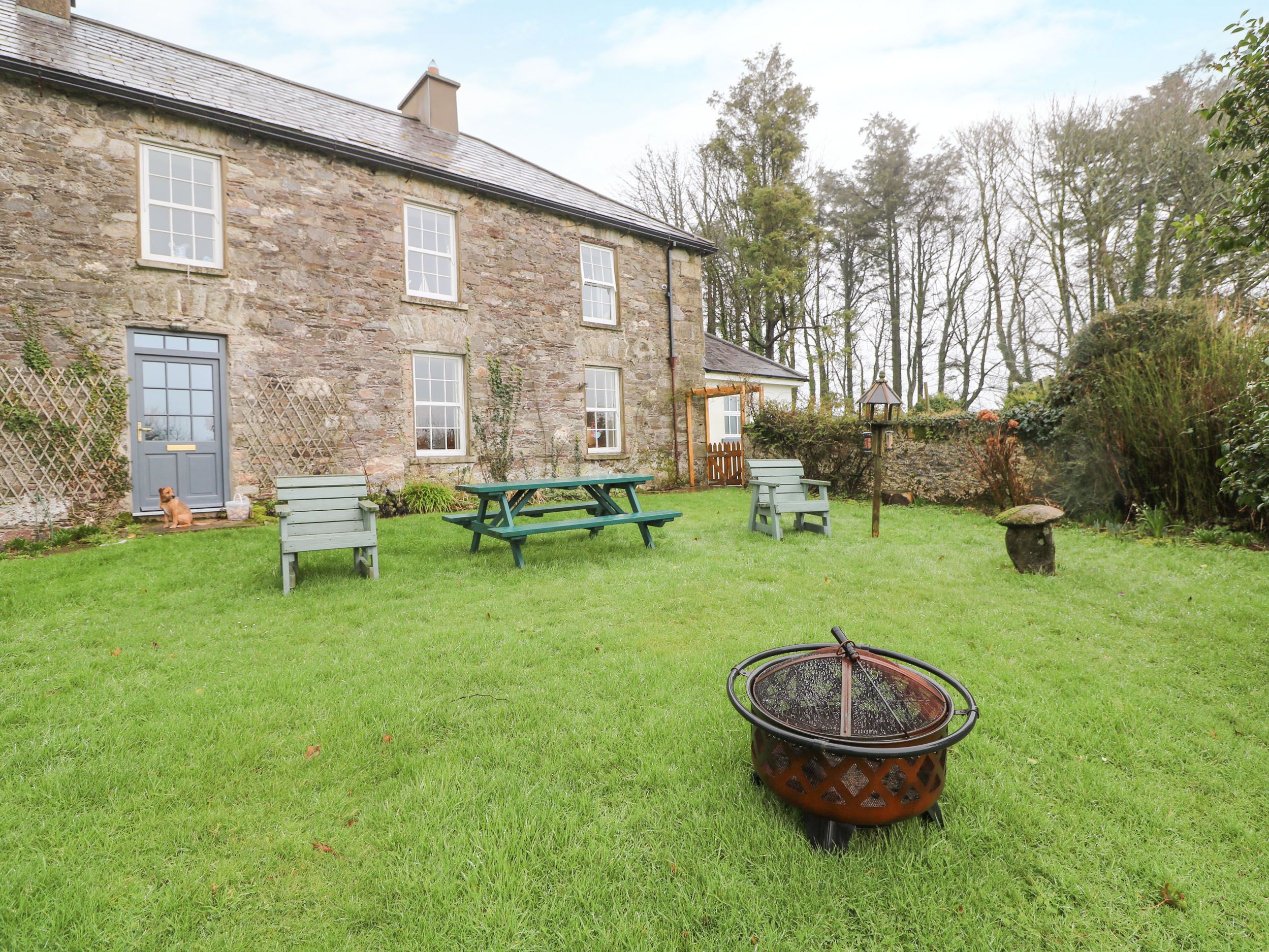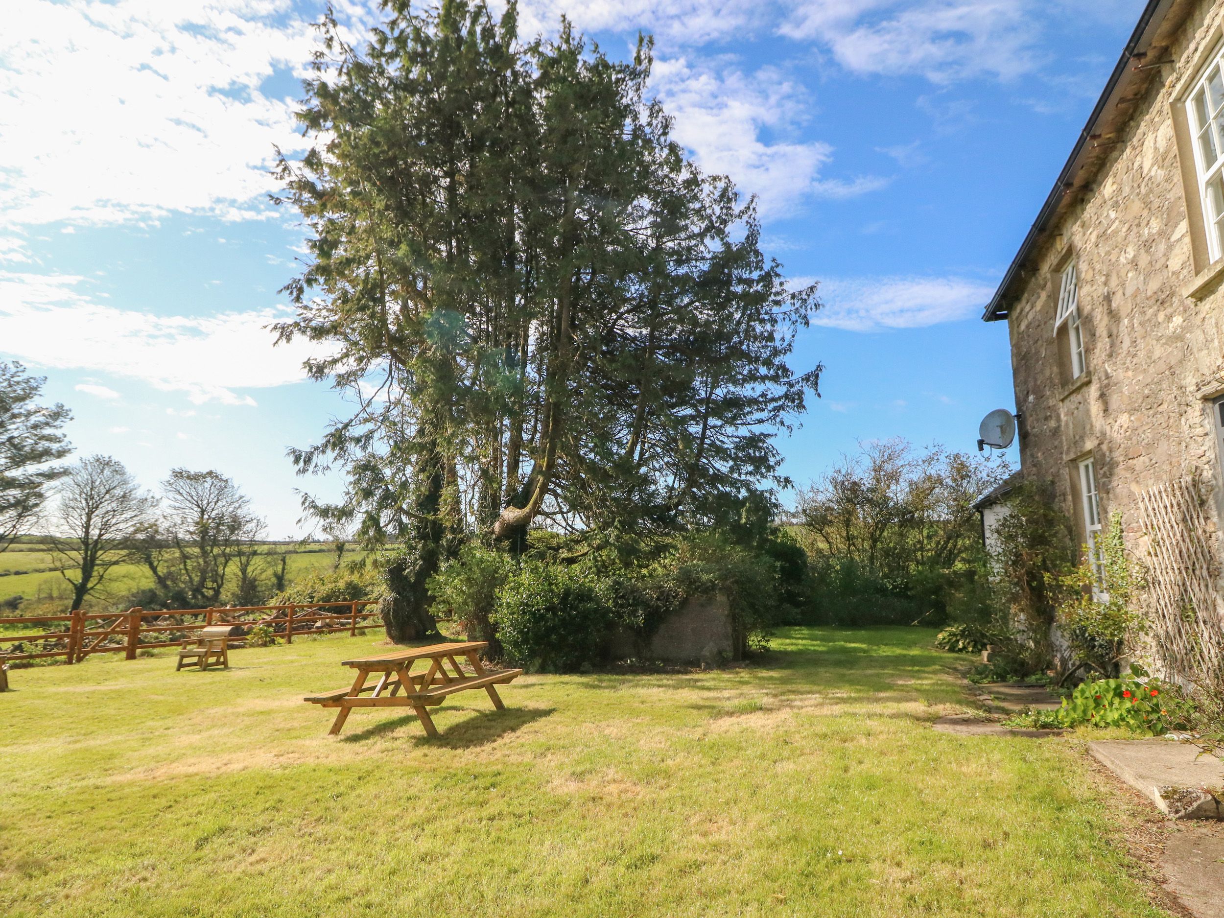 Amenities Oil central heating, open fire and woodburning stove. Electric oven and hob, AGA, microwave, fridge/freezer, washing machine, tumble dryer, dishwasher, 2 x TV, Netflix, WiFi and a selection of books and games. Fuel and power inc. in rent. Bed linen and towels inc. in rent. Travel cot, highchair and stairgate available on request. Ample off-road parking. Enclosed rear lawn with furniture. One well-behaved dog welcome. Sorry, no smoking. Shop 5.7 miles, pub close by. Note: The king-size and twin rooms are joined together by a door, which can be unlocked to make a family room on request. Note: Dogs to be kept on a lead when outside as farm and fields with livestock around