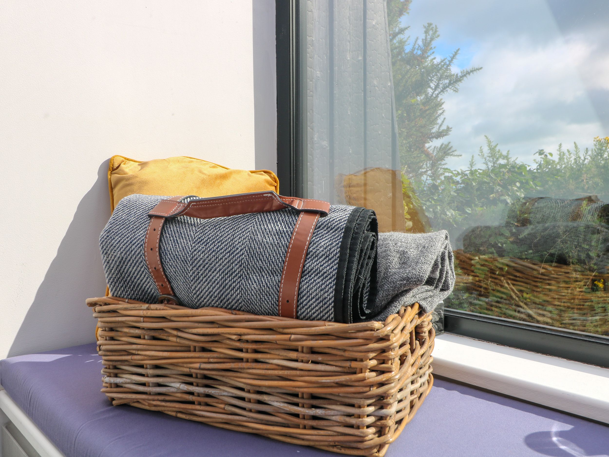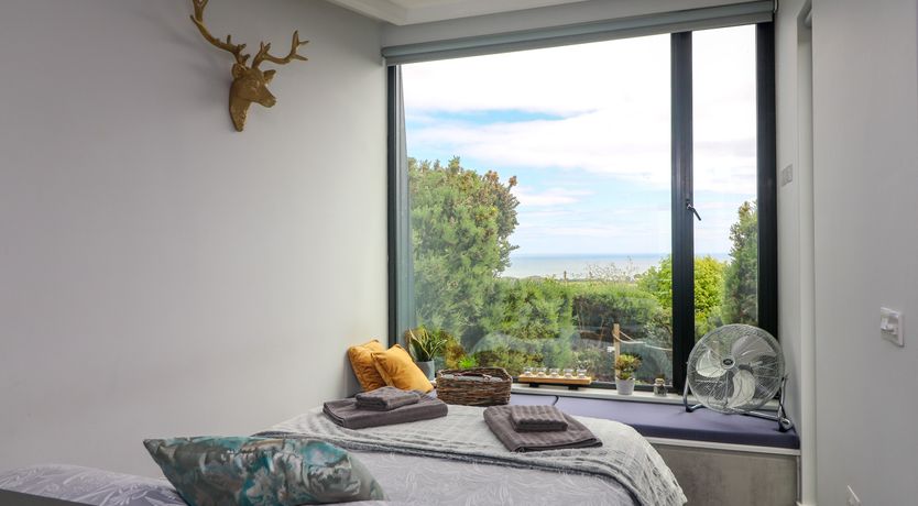 Amenities Central underfloor heating. Oven, induction hob, microwave, fridge, toaster, kettle, coffee maker, hairdryer. Wi-Fi. Fuel and power inc. in rent. Bed linen and towels inc. in rent. On-site parking for 1 car. Enclosed garden with outdoor waterfall shower and furniture. Cinema projectors and 8ft high viewing windows of the Irish sea coastline. Sorry, no pets and no smoking. Shop 1.3 miles, pub 0.9 miles. Note: This property can be booked with properties 1157304, 1157314, and 1157315, together sleeping up to 9 guests. Note: Check-in from 3.30pm and check-out by 12pm.