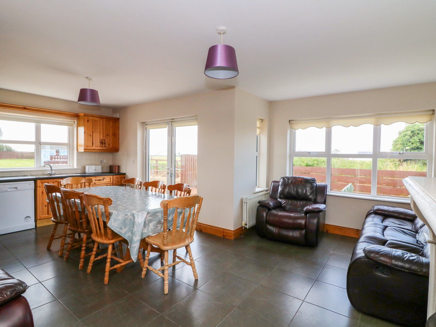 Amenities Oil central heating, open fire. Electric oven and hob, microwave, fridge/freezer, toaster, kettle, dishwasher, washing machine, tumble dryer, TVs, DVD player, a selection of books, games, DVDs and WiFi. Fuel, power and starter pack for fire inc. in rent. Bed linen and towels inc. in rent. Ample off-road parking. Enclosed lawn, patio and gravelled area with furniture. Sorry, no pets and no smoking. Shop 2.2 miles and pub 5.8 miles