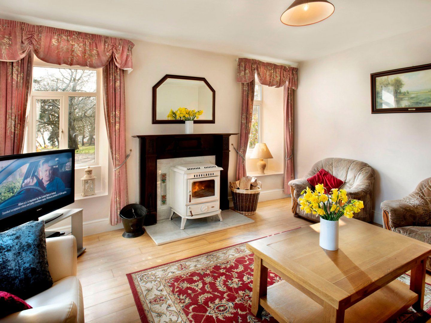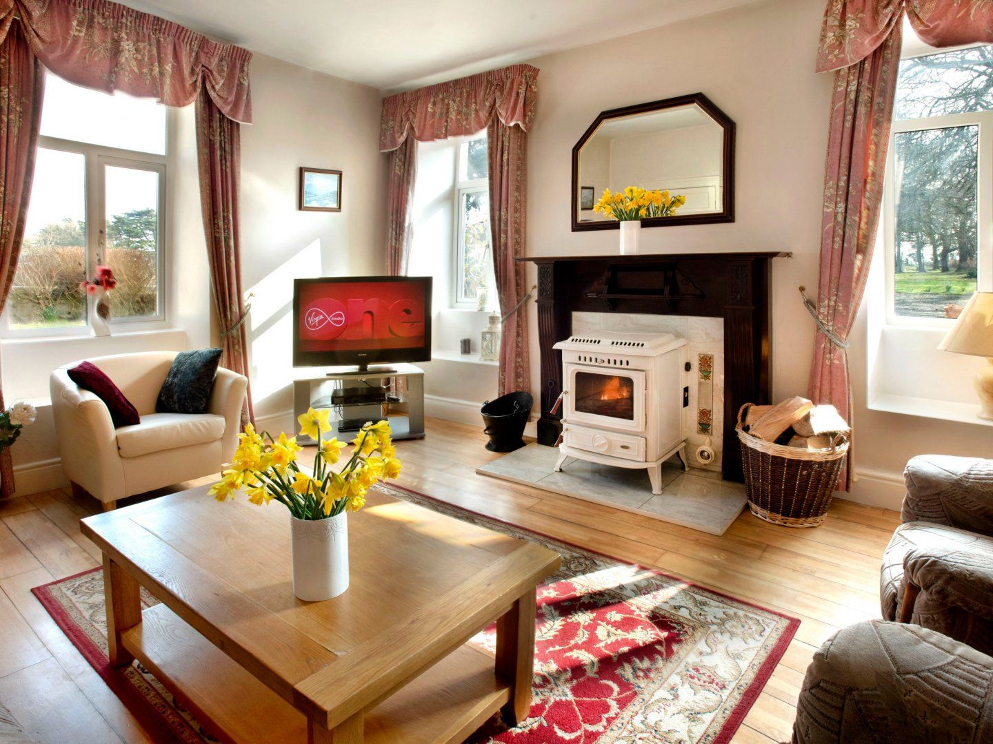 Accomodation Details Three bedrooms: 1 x king-size with en-suite walk-in shower, basin and WC, 1 x twin, 1 x single. Bathroom with shower over bath, basin and WC. Kitchen/diner. Sitting room with woodburning stove