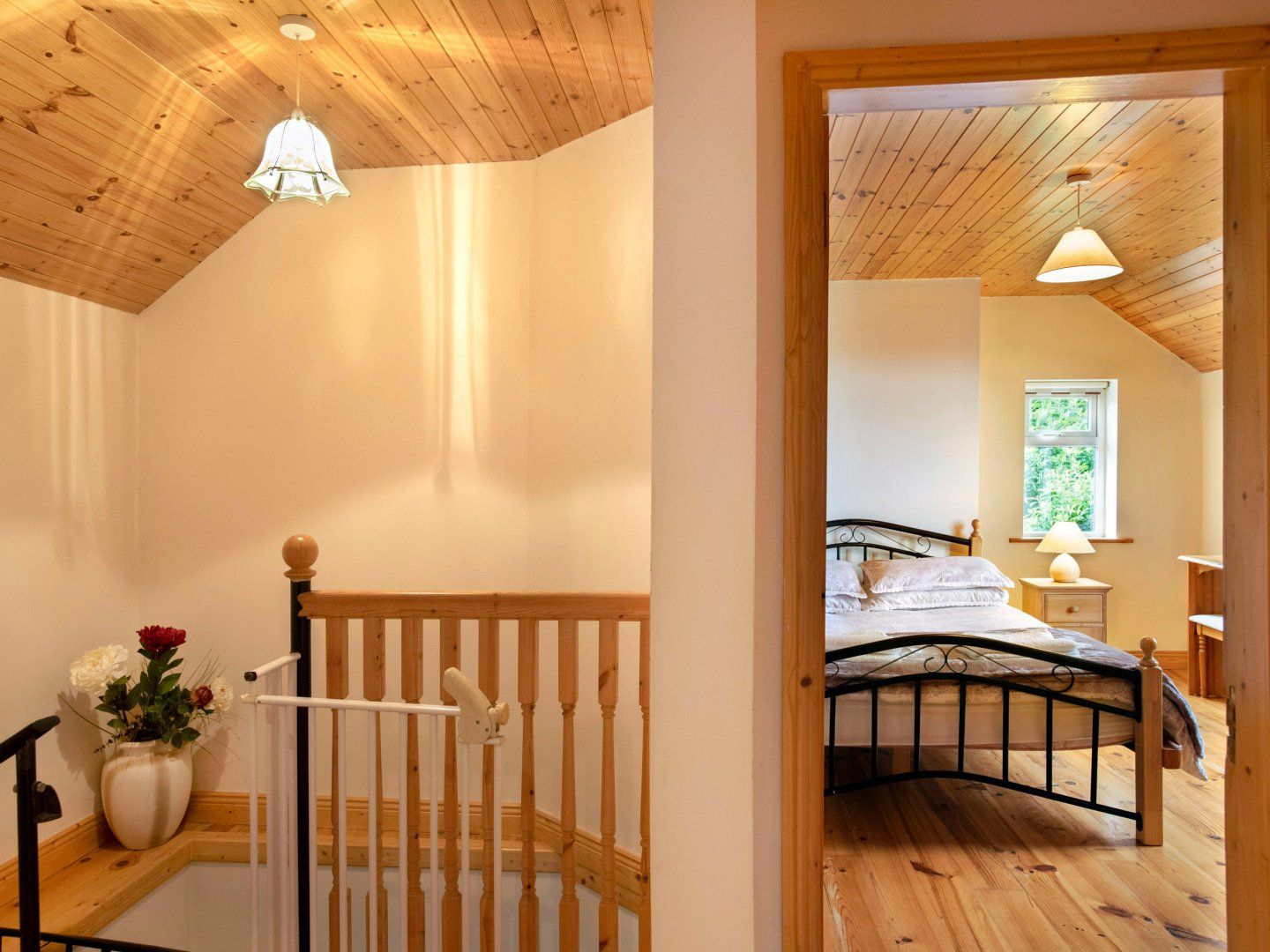 Amenities Oil central heating with woodburning stove. Electric oven and hob, microwave, fridge/freezer, dishwasher, washer/dryer, TV and CD player. Fuel, power and starter pack for fire inc. in rent. Bed linen and towels inc. in rent. Highchair and cot available. Off road parking for three cars. Lawned and gravelled garden with furniture. Sorry, no pets or smoking allowed. Shop and pub within 0.5 miles. Note: Spiral staircase. Note: Fenced pond in owner’s grounds, please supervise children when outdoors.