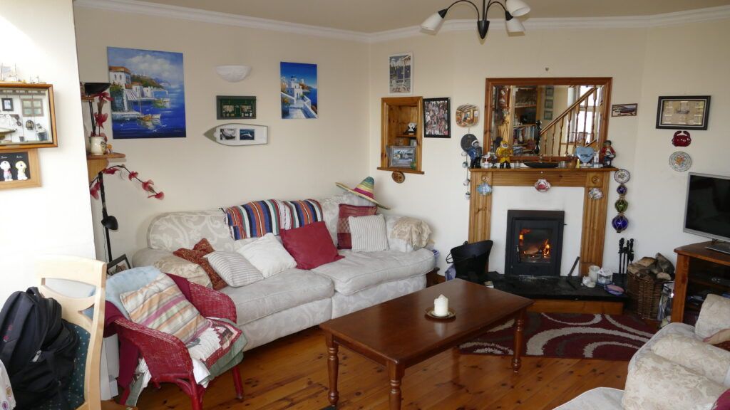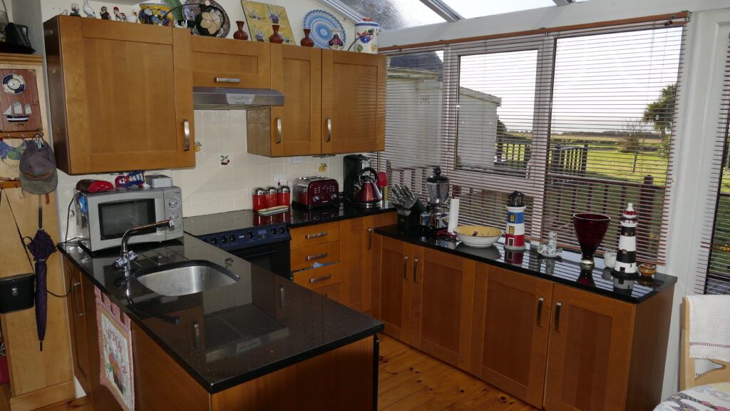 The master bedroom is en-suite. There is also a separate bathroom and shower on the first floor. The sitting room/kitchen is open plan with a Stanley stove and modern kitchen equipped to the highest standard. The kitchen is south facing and opens out to a private deck area with views of the sea. Everything you need for your self-catering holiday is included, all kitchen utensils, tea towels, bathroom towels will be provided, you will only need your beach towels and personal items. A children’s Playground is located 100 yards from the house together with a tennis court and full-size football pitch and a barbeque area. The area is ideal for walking, cycling, horse riding, fishing or just for lazing about on the beach.
