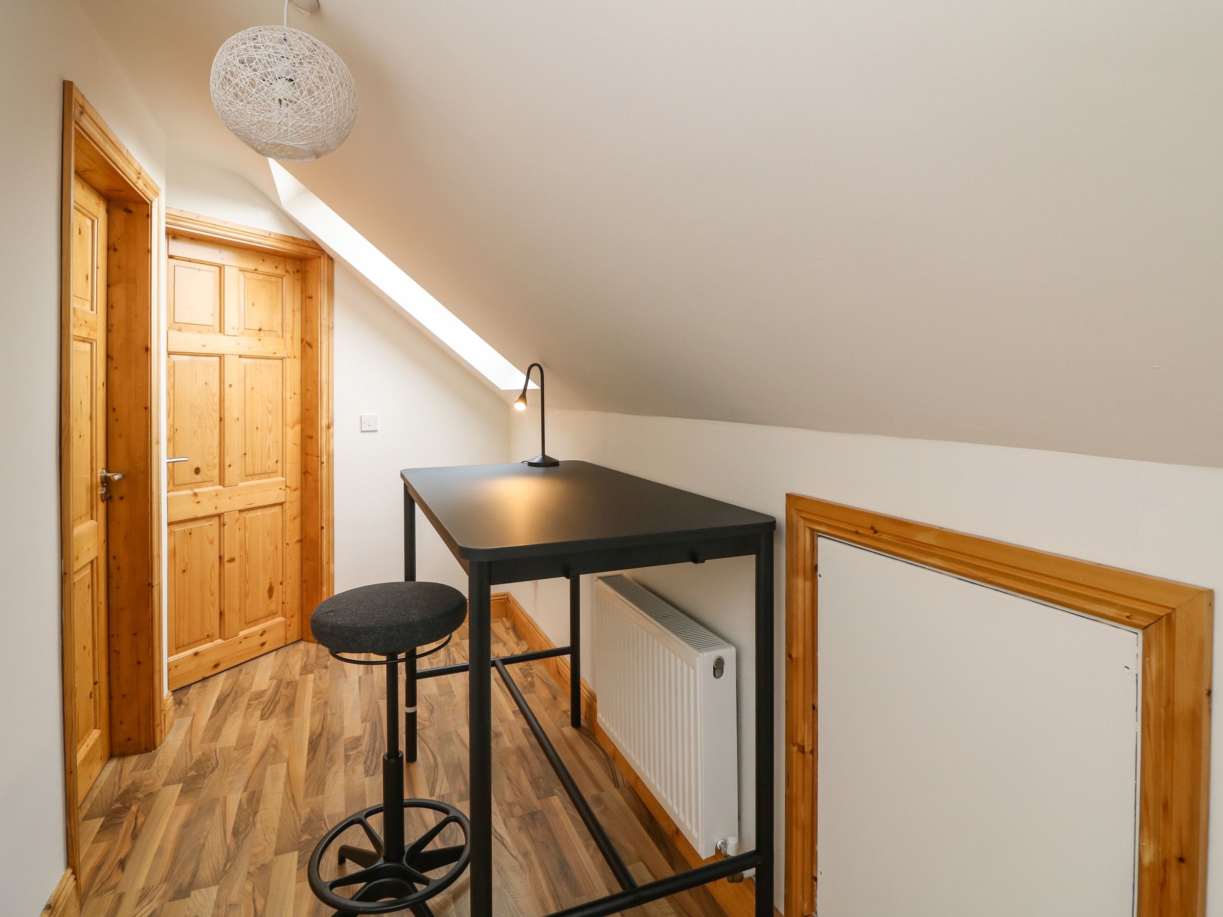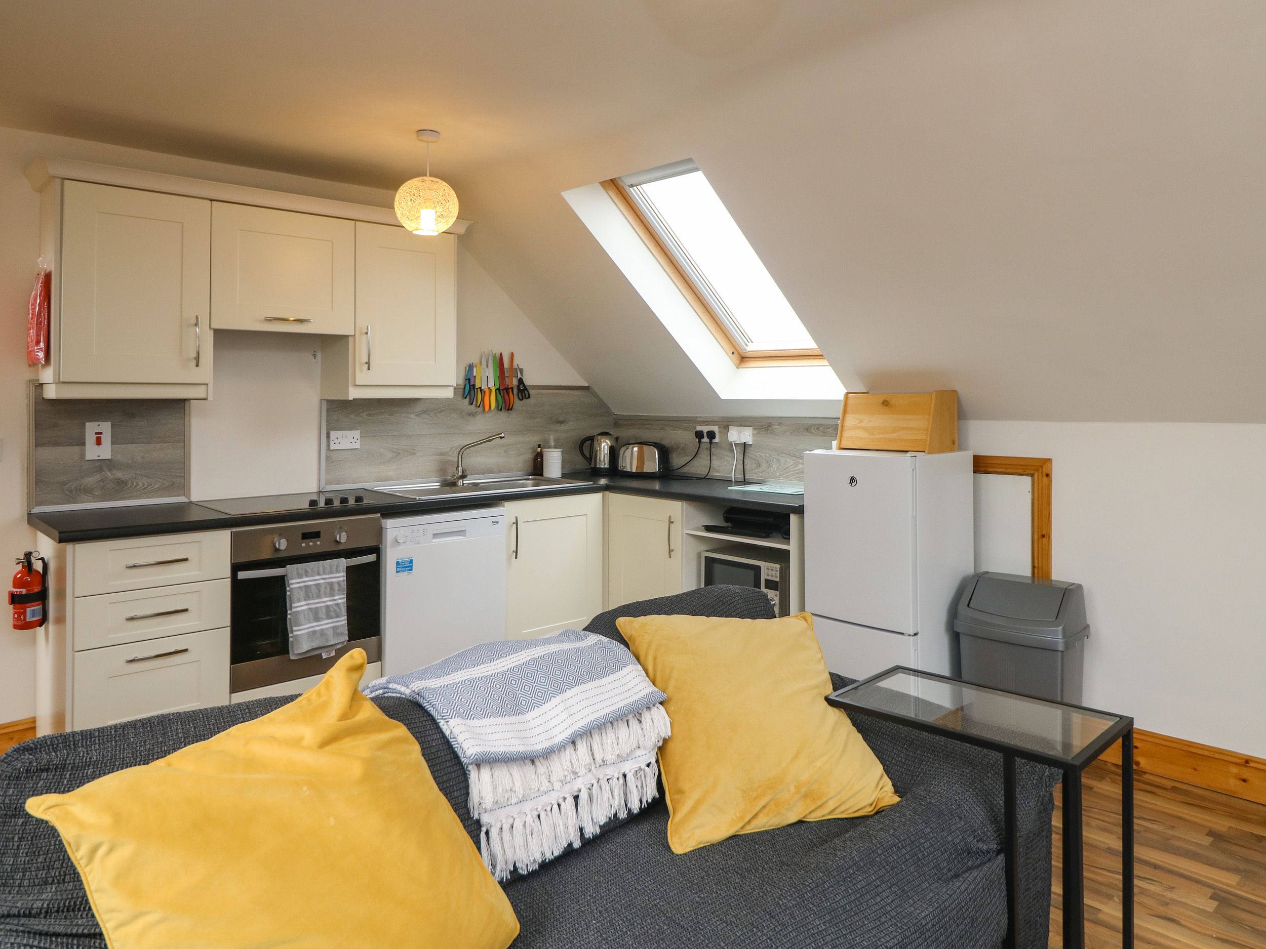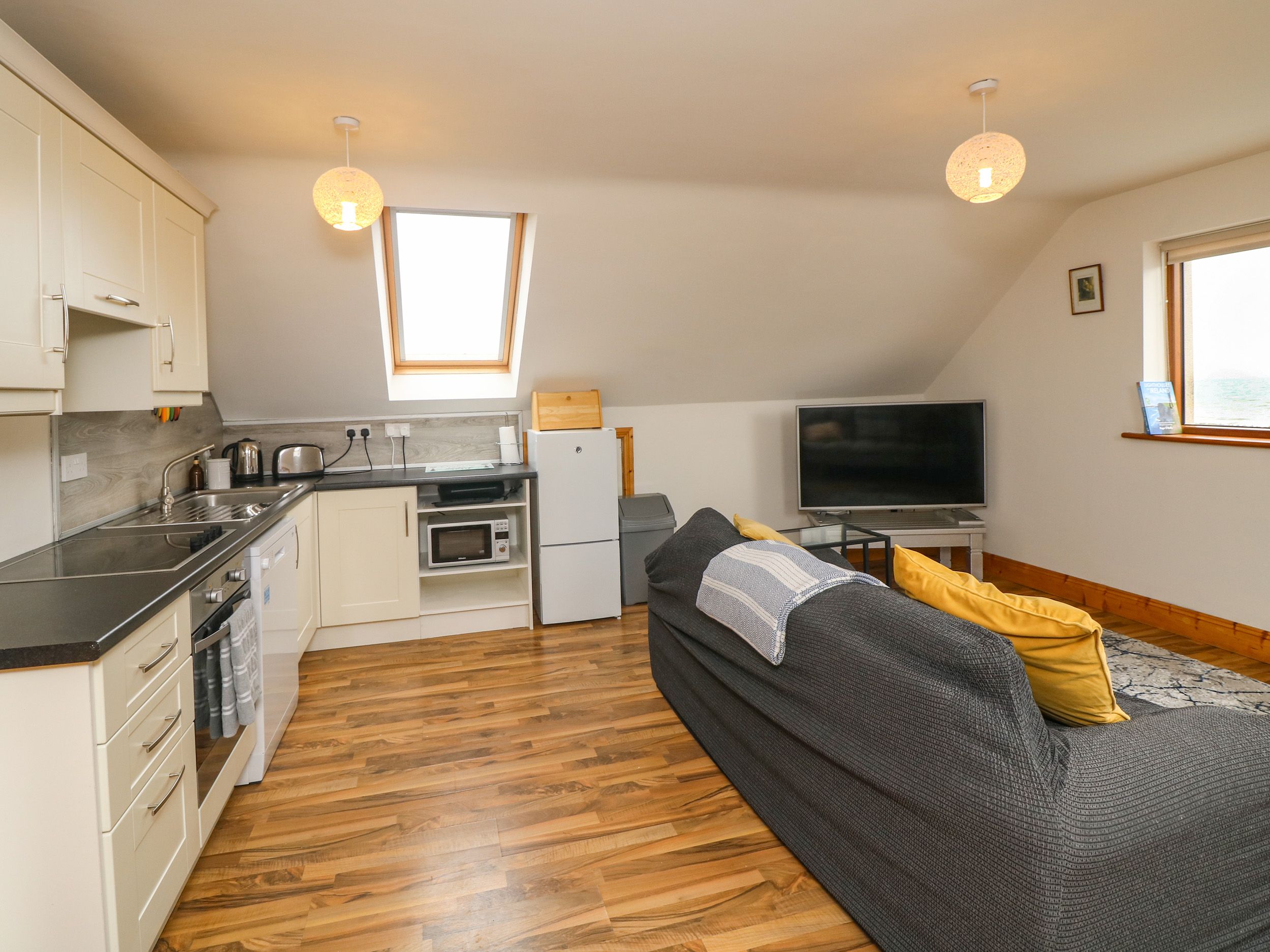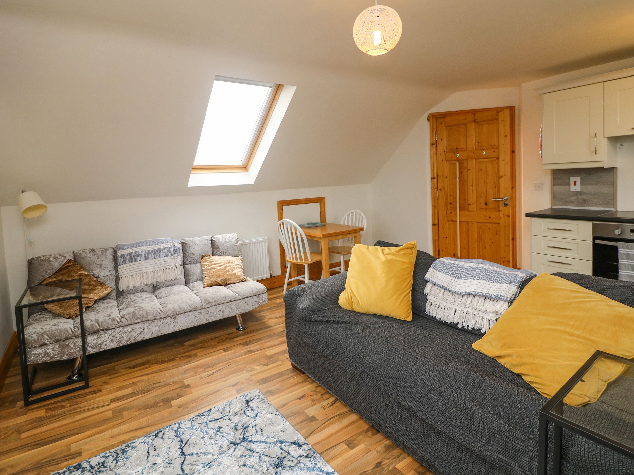 Accomodation Details One king-size bedroom with en-suite walk-in shower, basin, towel rail and WC. Additional ground-floor bathroom with walk-in shower, basin, towel rail and WC. Kitchen/diner/sitting room.