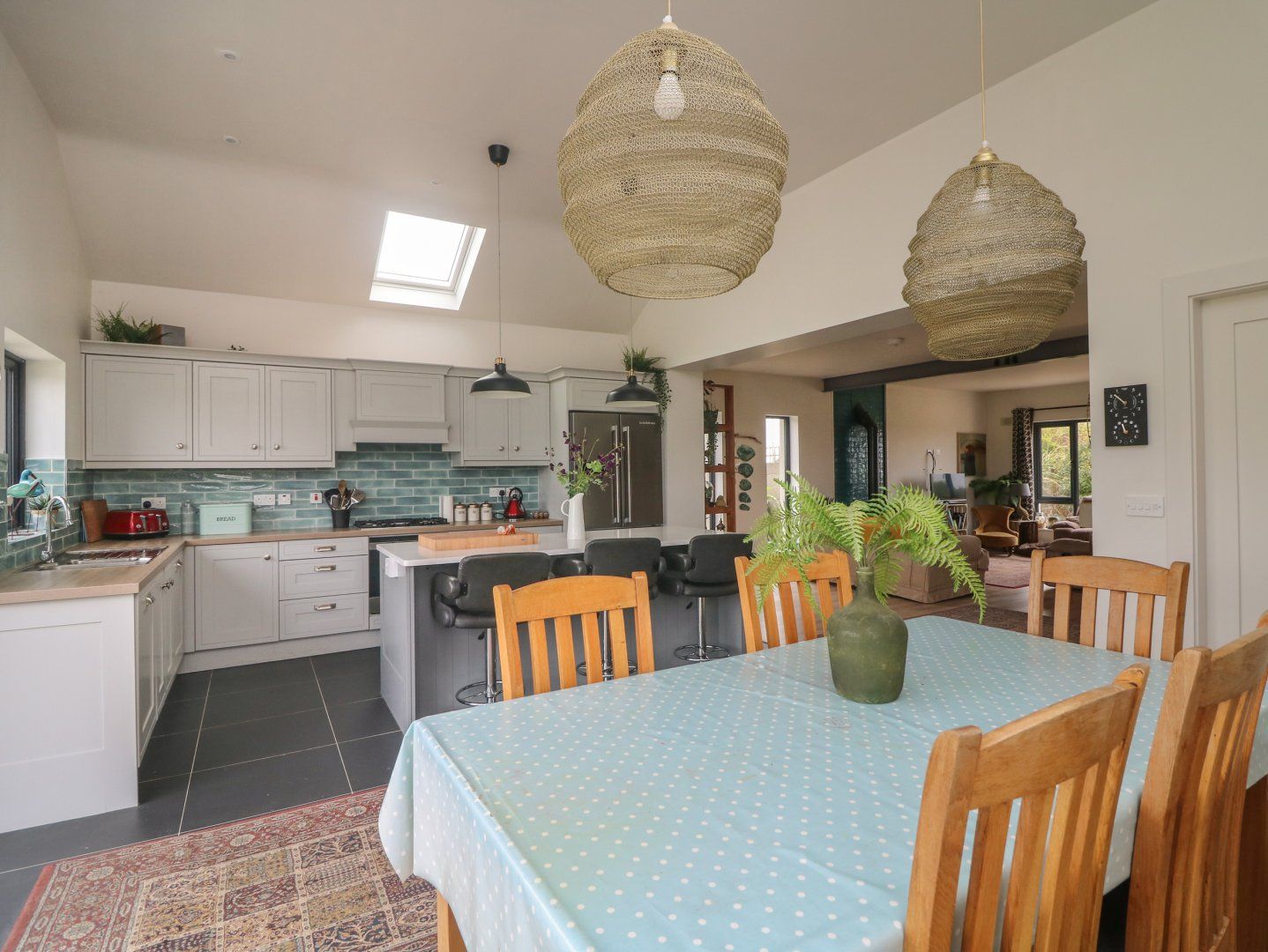 This home consists of an open-plan living space with kitchen, dining area and sitting area, and a utility. Appliances include an electric oven and gas hob, American-style fridge/freezer, washer/dryer, dishwasher and a solid-fuel stove. The bedrooms consist of a super-king with en-suite shower, two ground-floor kings, and a single, serviced by a ground-floor shower room. Outside, there are enclosed gardens to the front and rear with lawned, gravelled, and decked areas, along with private parking for five cars. Please note, this property welcomes two well-behaved dogs, but is non-smoking. WiFi, fuel, power, starter pack for woodburning stove, bed linen, and towels are all included in the rent. Highchair and travel cot available on request. Make memories in Ireland by booking a stay at Sonas. Note: There are steep internal stairs, please take care. Note: There is an old boat in the garden; please supervise children at all times due to possible hazards.