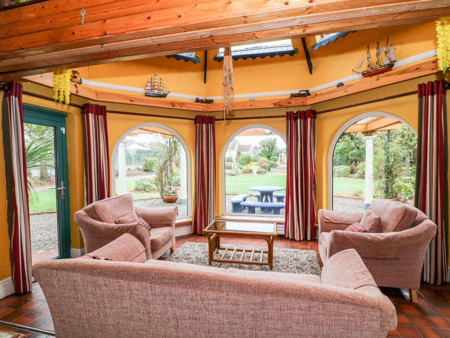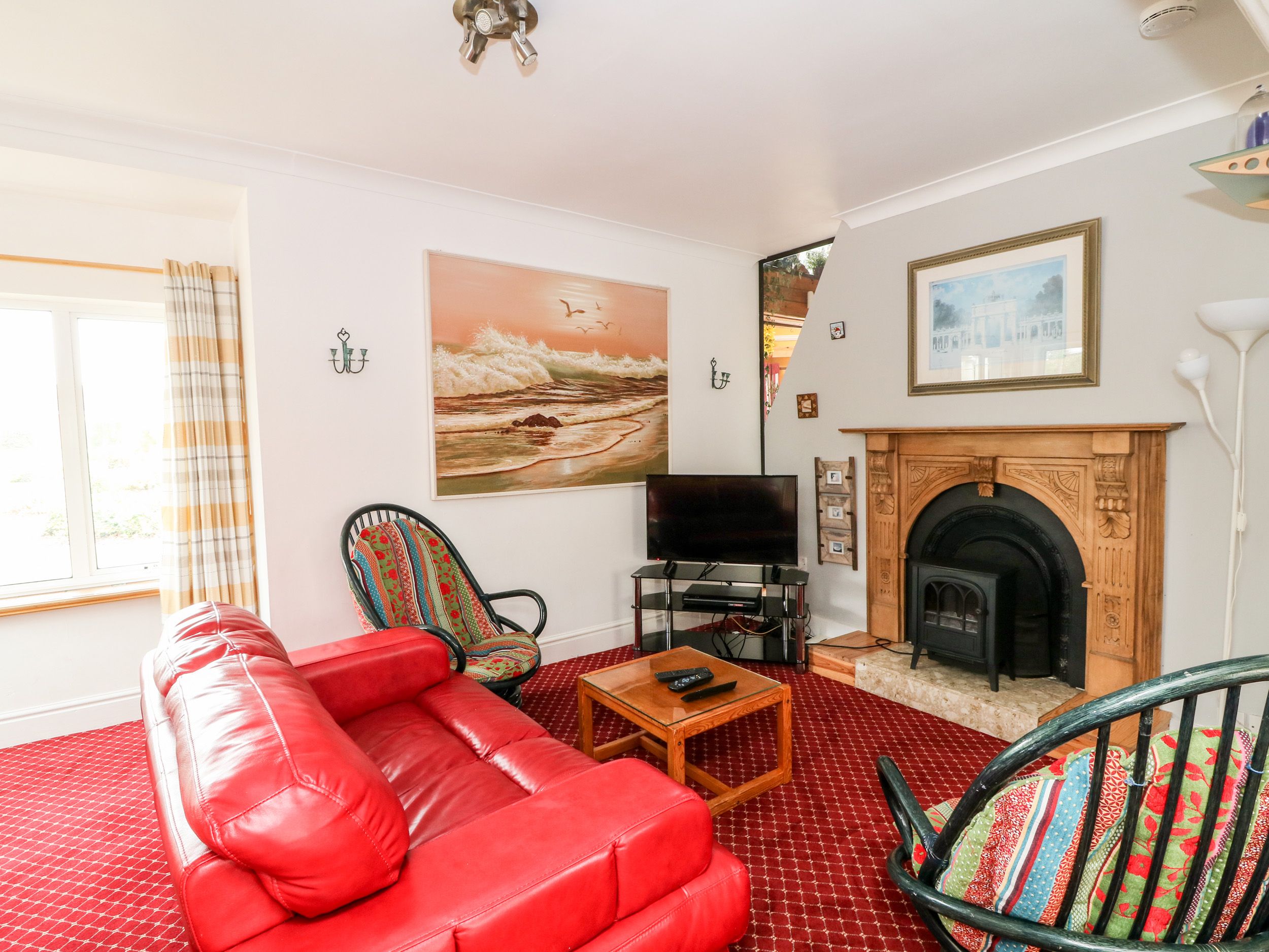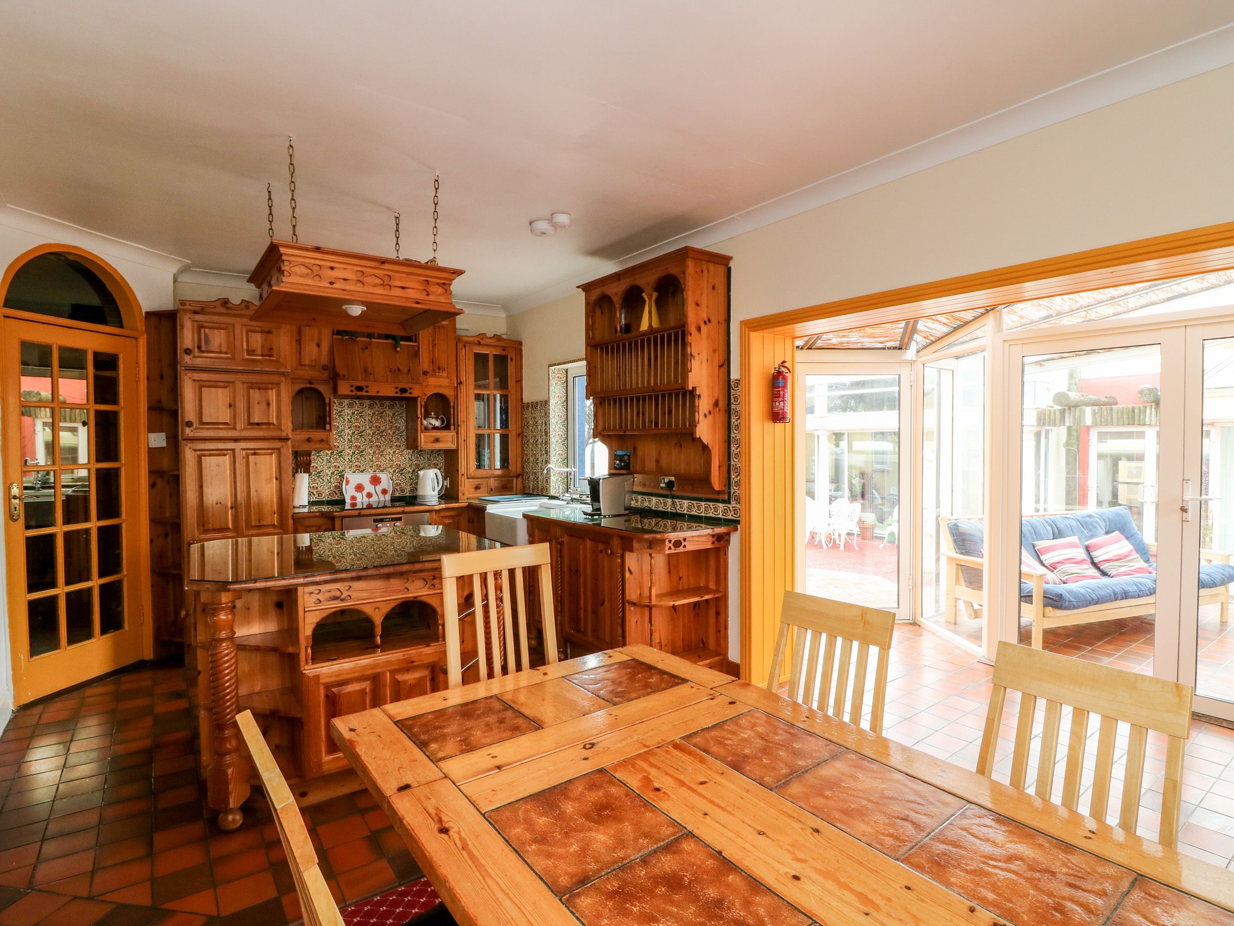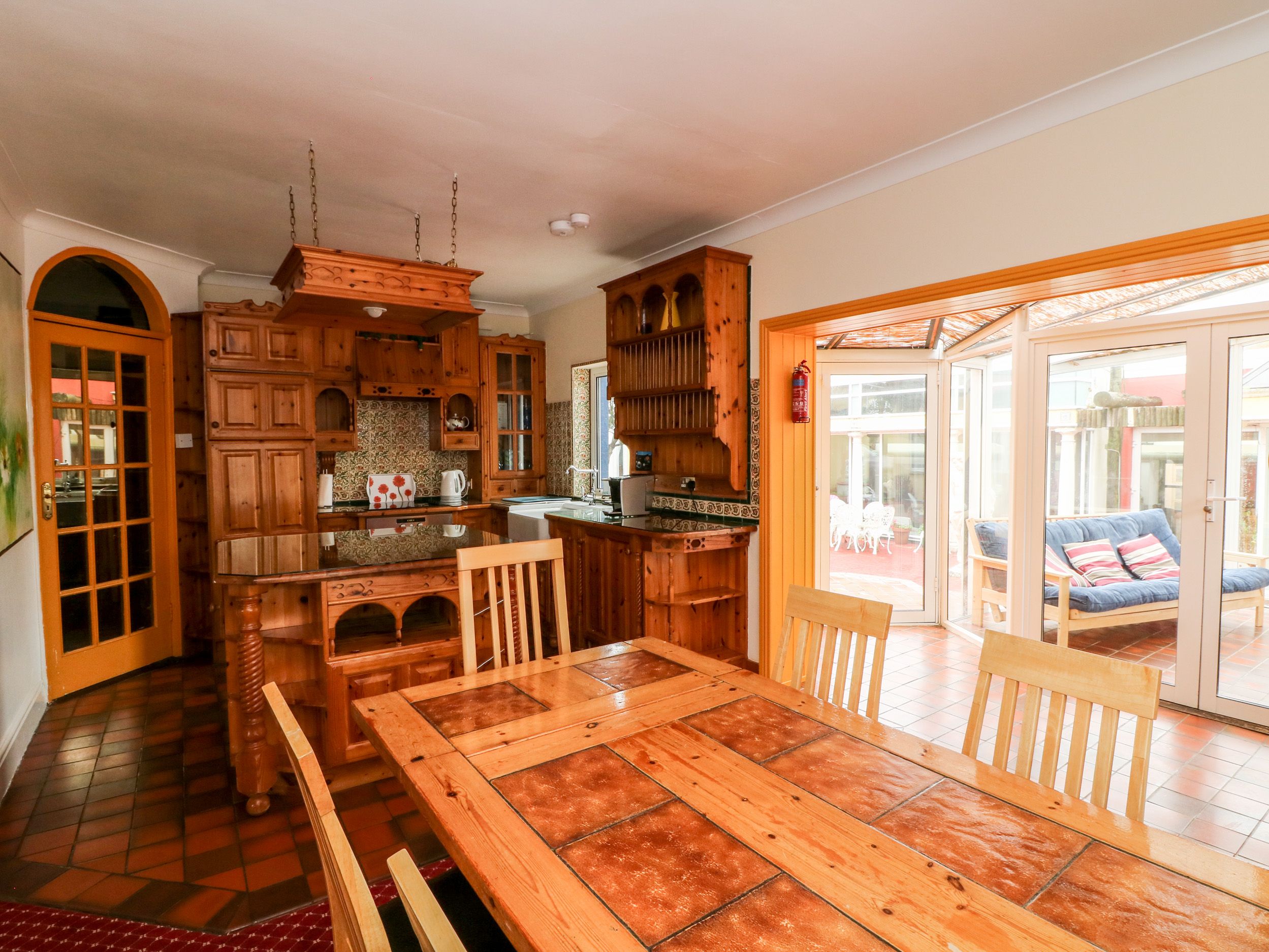 Oil central heating. Electric oven and hob, microwave, fridge, washer/dryer, dishwasher, TV with Free-to-air channels, DVD, WiFi, selection of books, games and DVDs. Fuel and power inc. in rent. Bed linen and towels inc. in rent. Travel cot and highchair on request. Off road parking for 3 cars. Courtyard with furniture. Shared front lawned garden with patio and furniture. Shared use of owners' lawned garden with fenced pond, Wendy House and play area. Shared use of owners' tennis court. Sorry, no smoking. Shop and pub 10 mins walk. Restaurant 1 min walk (no children after 6pm). Note: The entrance to the driveway is shared with two other properties. Note: There are 2 steps from the entrance hallway to the open plan living area. Note: Fenced pond in shared garden, children to be supervised. Note: Max. 8 adults and 2 children. Note: From April to September, this property only accepts a minimum of four night booking.